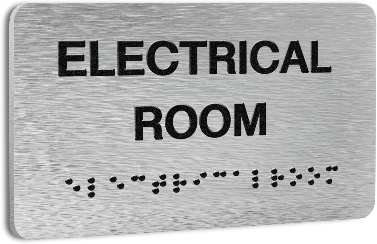 Elevator Room Signs for Business and Office Sign, ADA Signs with Raised Text & Grade 2 Braille, Easy Installation with Adhesive Pad – Brushed Aluminum/Silver