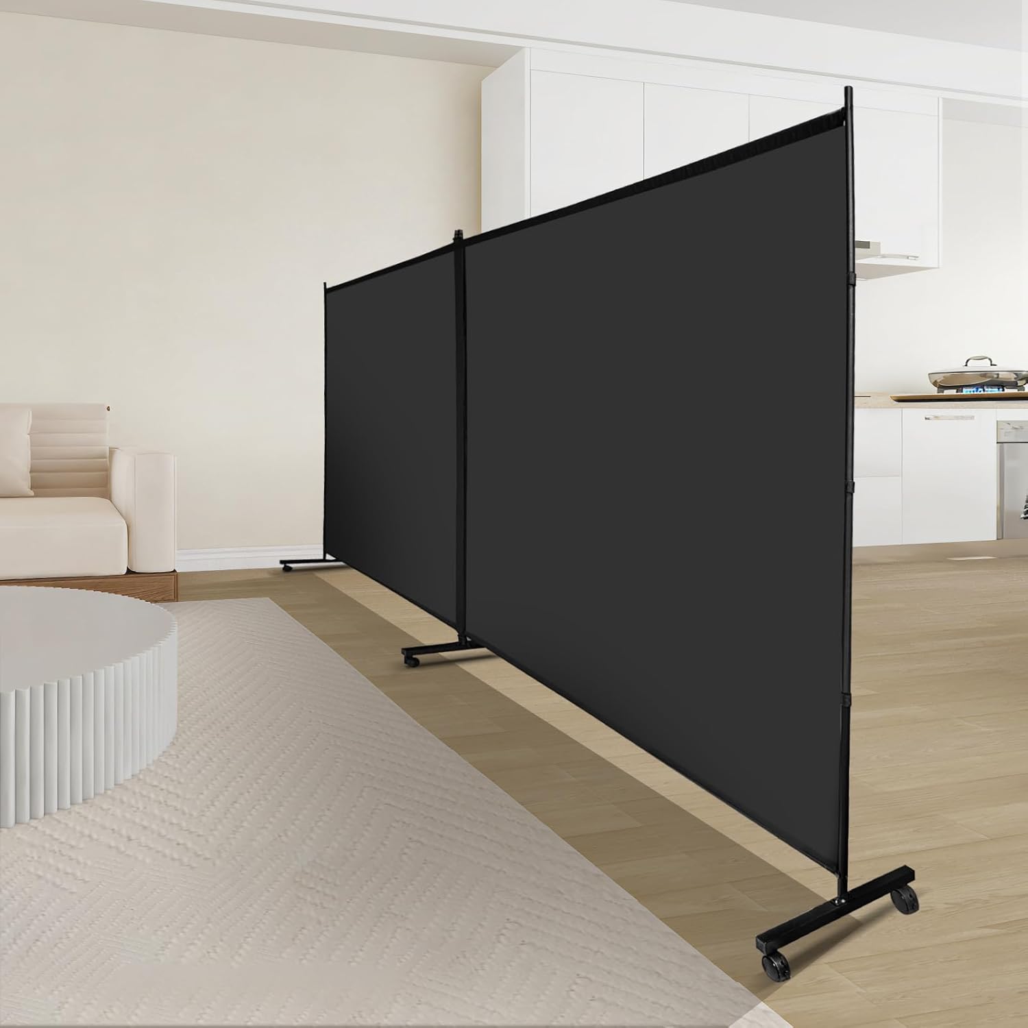 MAYOLIAH Indoor Room Divider 2 Large Panels on Wheels, 142”W x 75”H Rolling Privacy Screen W/Cover Strip, Portable Wall Divider for Home Office Partition, Black