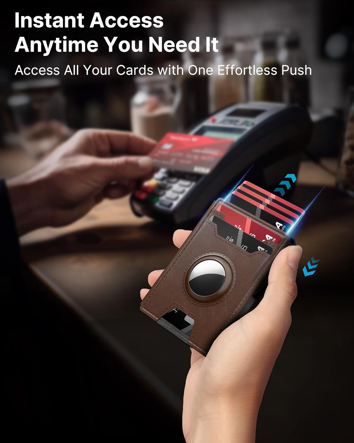 typecase AirTag Wallet for Men: Pop Up Card Case, Secure Holder for Apple Air Tag, Premium Leather, Smart, RFID Blocking, Slim, Minimalist, Thin, 13 Cards Capacitiy | ID Window | Money Clip (Brown)