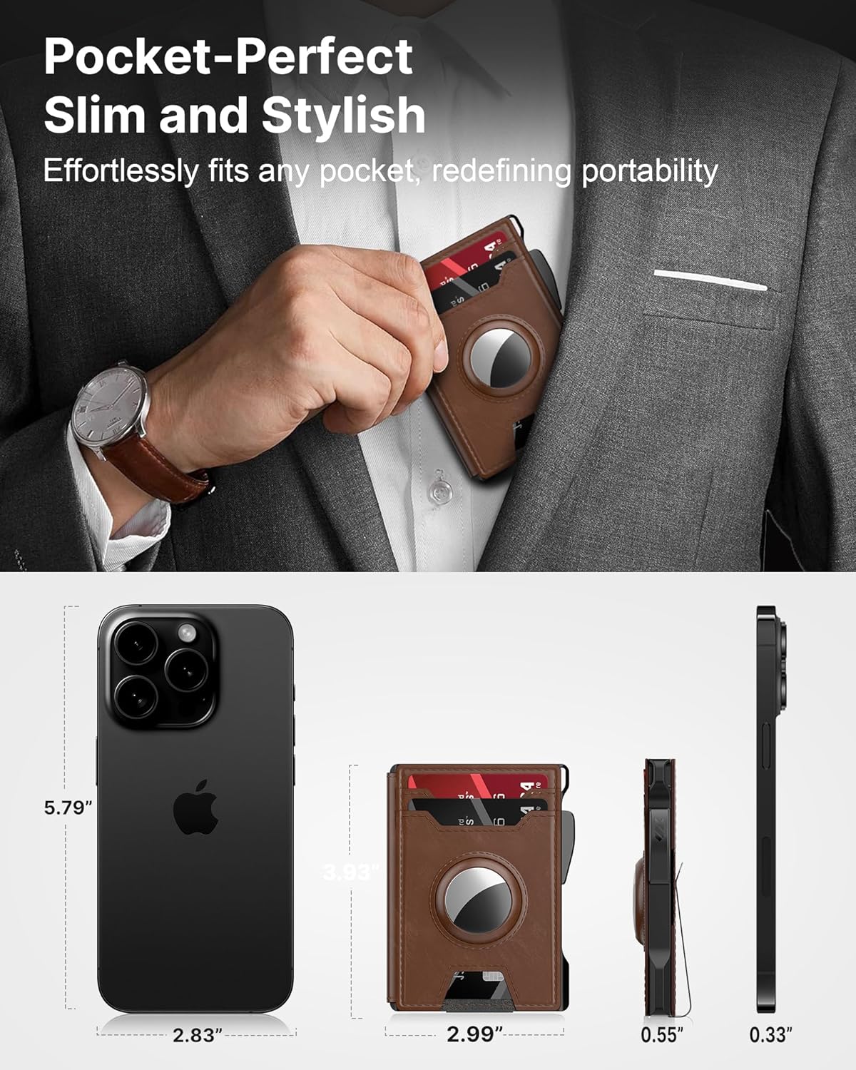 - 【COMPACT SIZE】Measuring just 3.86 * 2.99 * 0.55 inches, this wallet is small enough to fit easily in your front pocket, back pocket, or jacket pocket. No more bulky, uncomfortable wallets!
