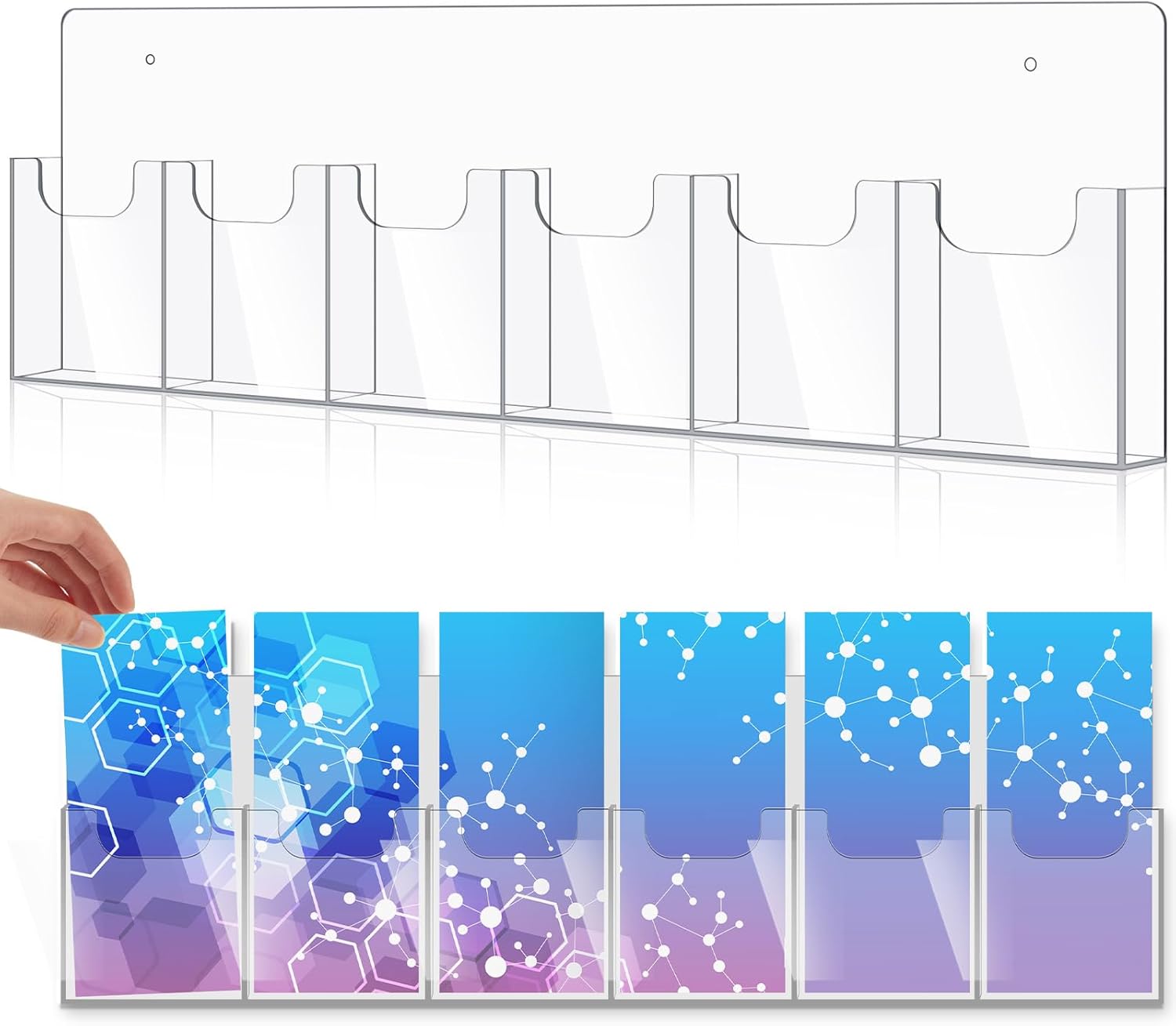 - Packaging Information: you will receive 1 wall-mounted magazine rack about 26.7 x 7.8 inches / 68 x 20 cm, which contains 6 independent small compartments, each with an inner diameter length of 11 cm and a width of 4 cm, suitable for accommodating 4 x 9 inch brochures; The set includes the required installation screws; Please tear off the product protection film after installation