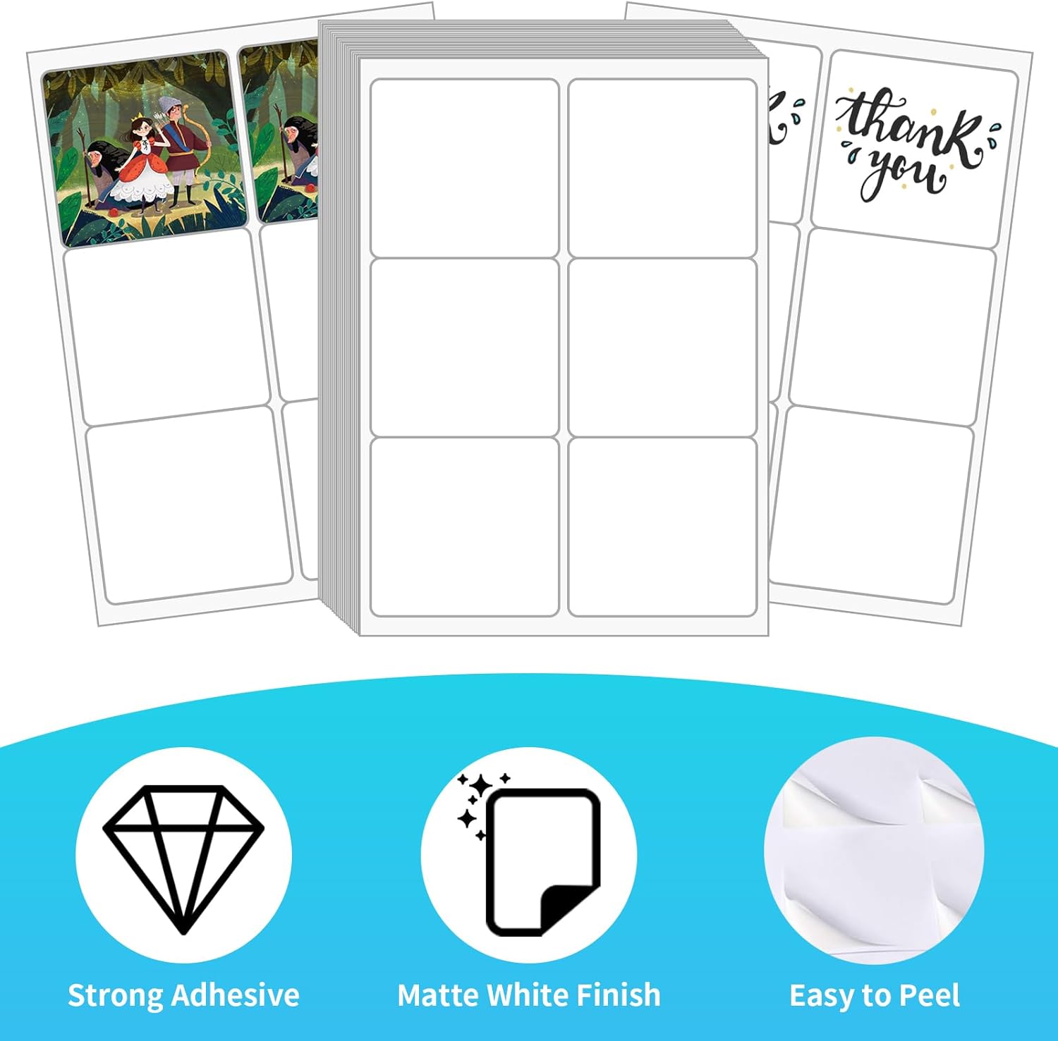 FungLam Printable Sticker Paper, 3-1/3" x 4" Shipping Address Labels 180 Blank Mailing Labels for Laser & Inkjet Printers, 6 per Page Label Stickers, 30 Sheets