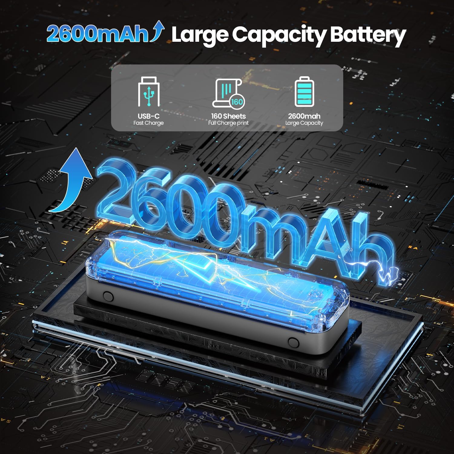 - Extended Battery Life: M834 wireless portable travel printer equipped with a 2600mAh rechargeable battery, the Phomemo M834 printer boasts 116% more capacity than other thermal portable printer, allowing for over 160 pages of continuous printing without power worries.