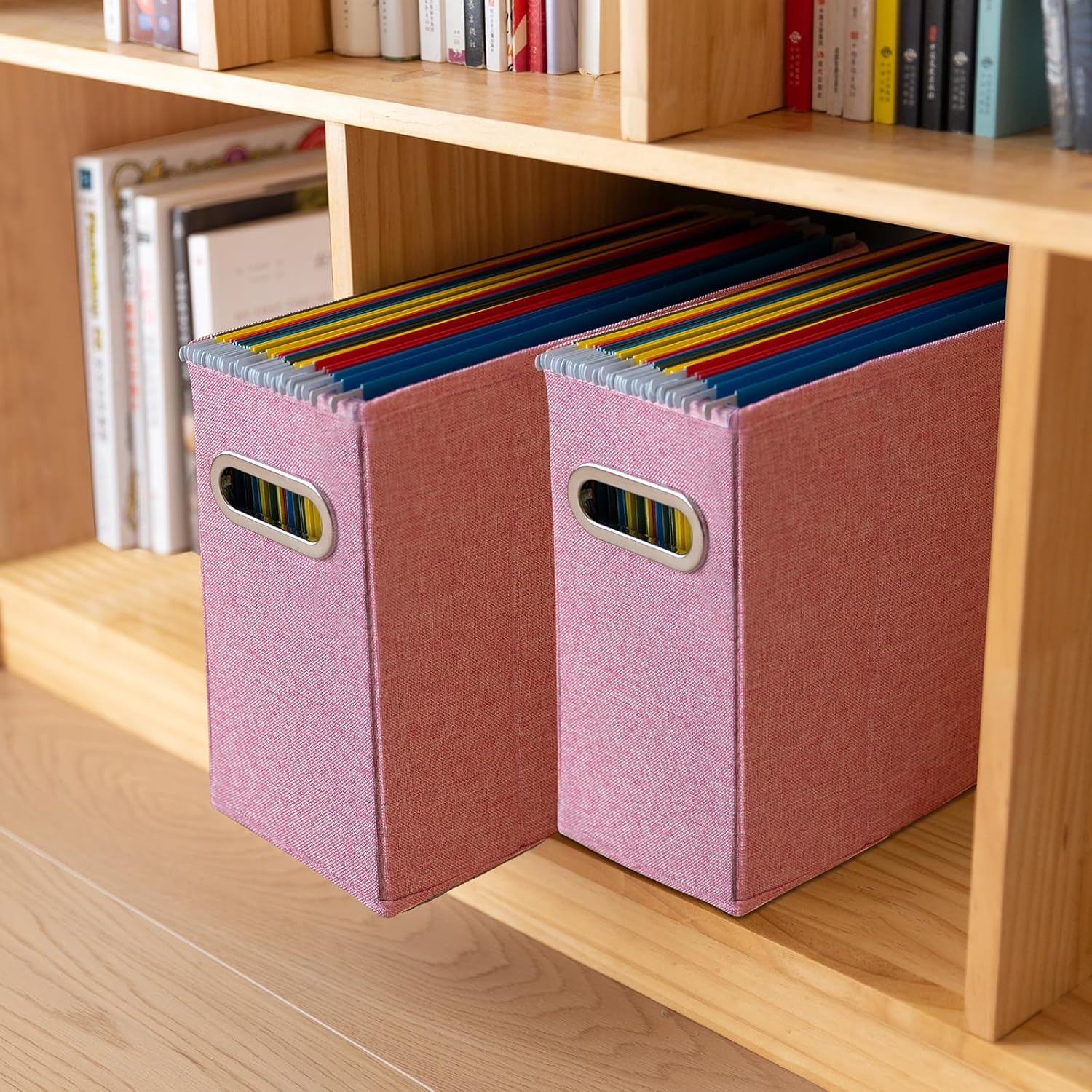 4 Packs Letter Size File Organizer, File Folders Organizer, Fabric Storage Box, Collapsible Paper Organizer with Metal Handle, Smooth PVC Rails, Only Box (Pink)