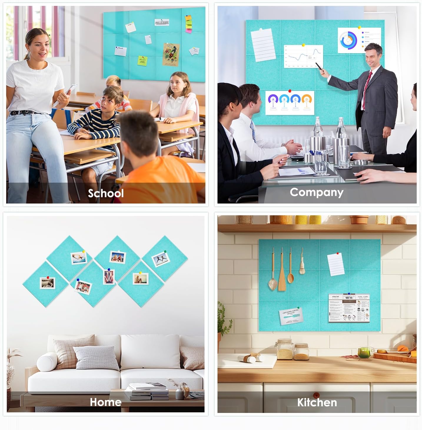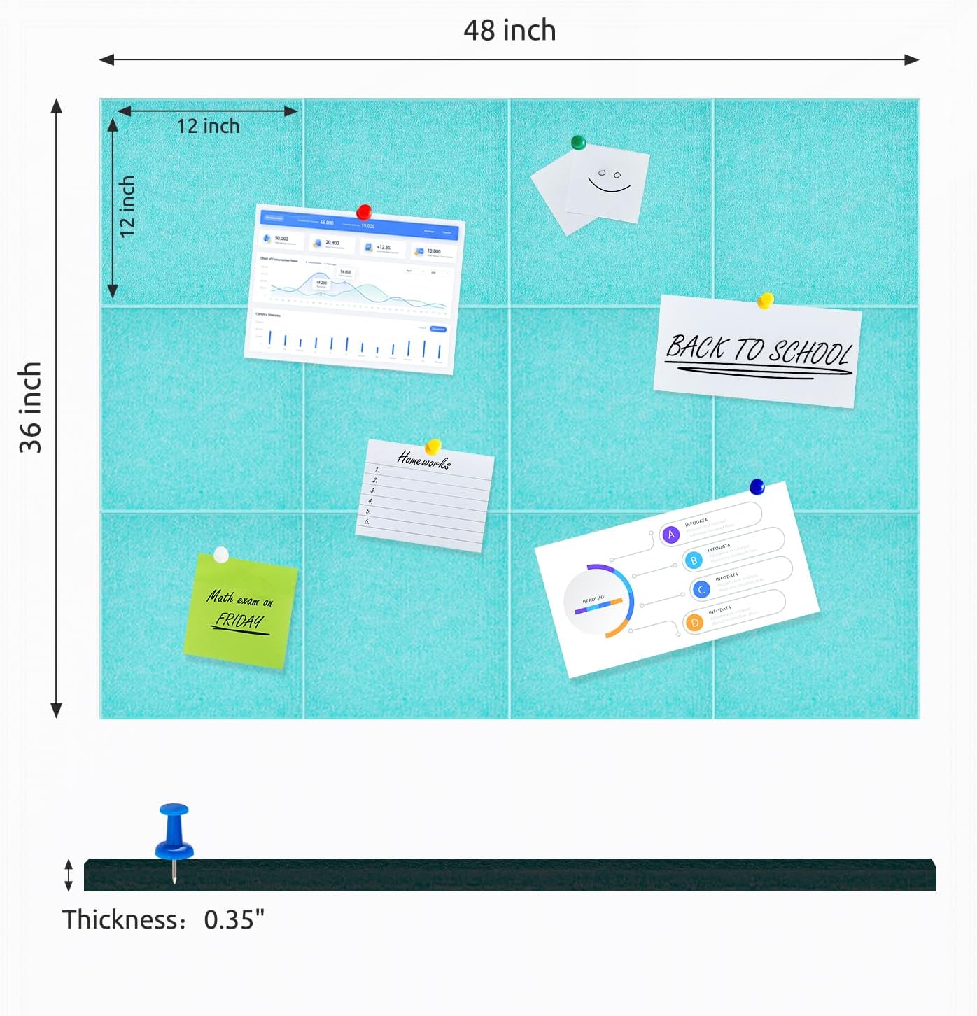 Cork Board for Wall,48"x36" 12 Pack Felt Wall Tiles with Safe Removable Adhesive Tabs, Bulletin Boards for Home Office Kitchen, Pin Board Notice Board for Photos, Memos, Baby Blue