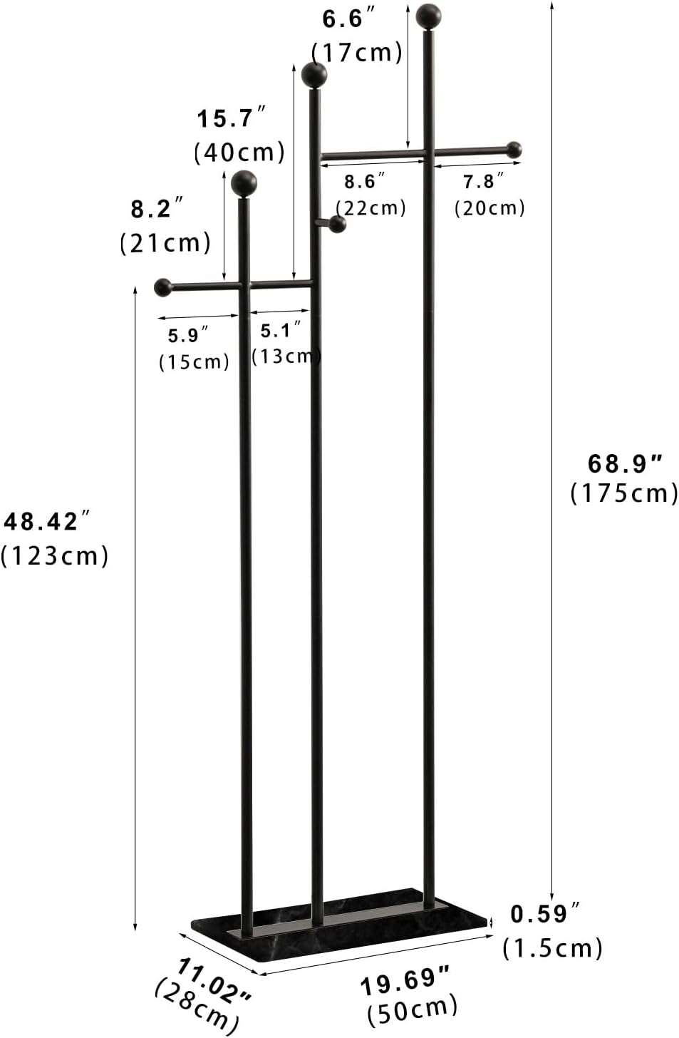 Metal Freestanding Coat Rack with Marble Base Heavy Duty Clothes Rack Coat Tree Stand Hat Rack for Corner Bedroom Entryway Living Room Hotel 19.69 x 11.02 x 68.9 Inches (Black)