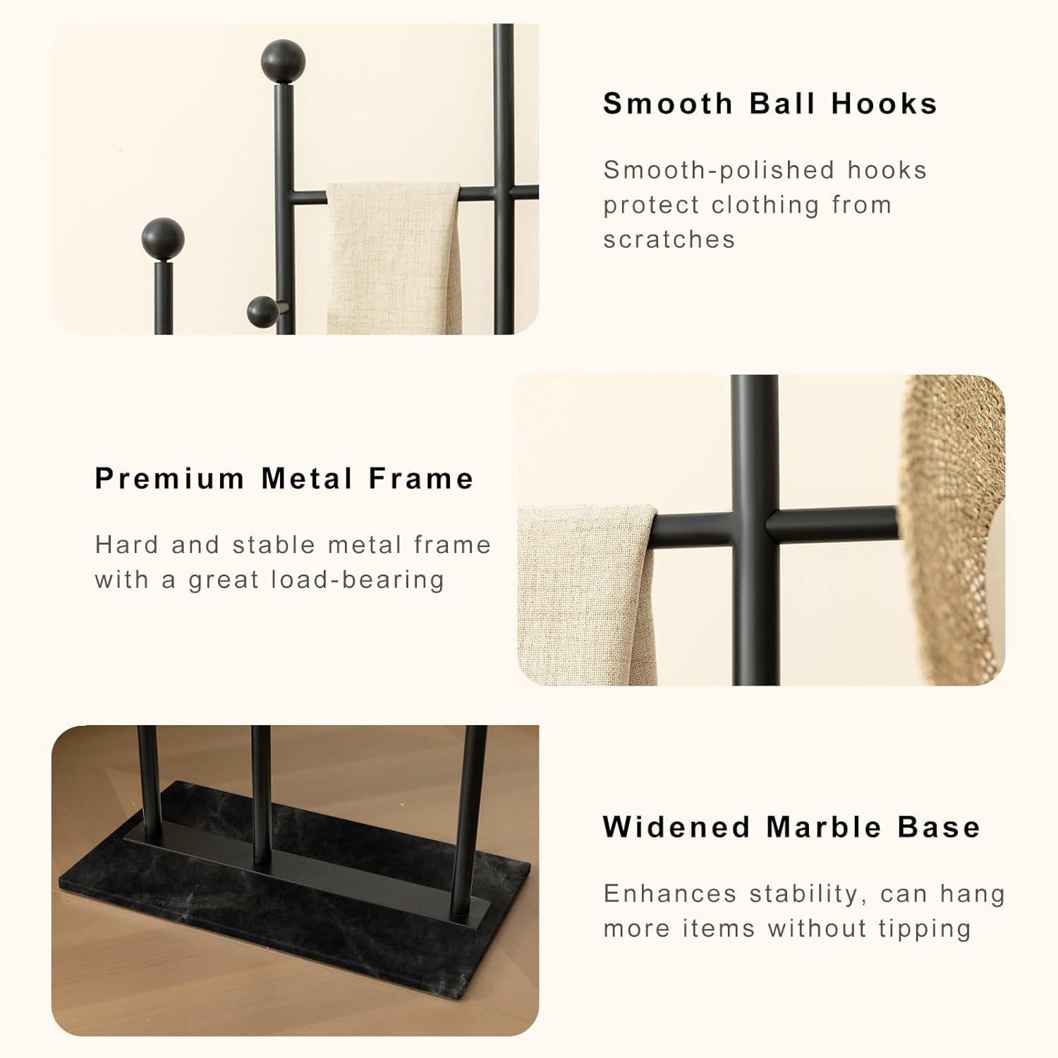- High-Quality Frame: Our freestanding coat rack frame is crafted from premium metal, chosen for its durability and strength; This heavy-duty material ensures that the rack remains stable and sturdy, even when supporting a substantial number of coats, hats, scarves, and accessories