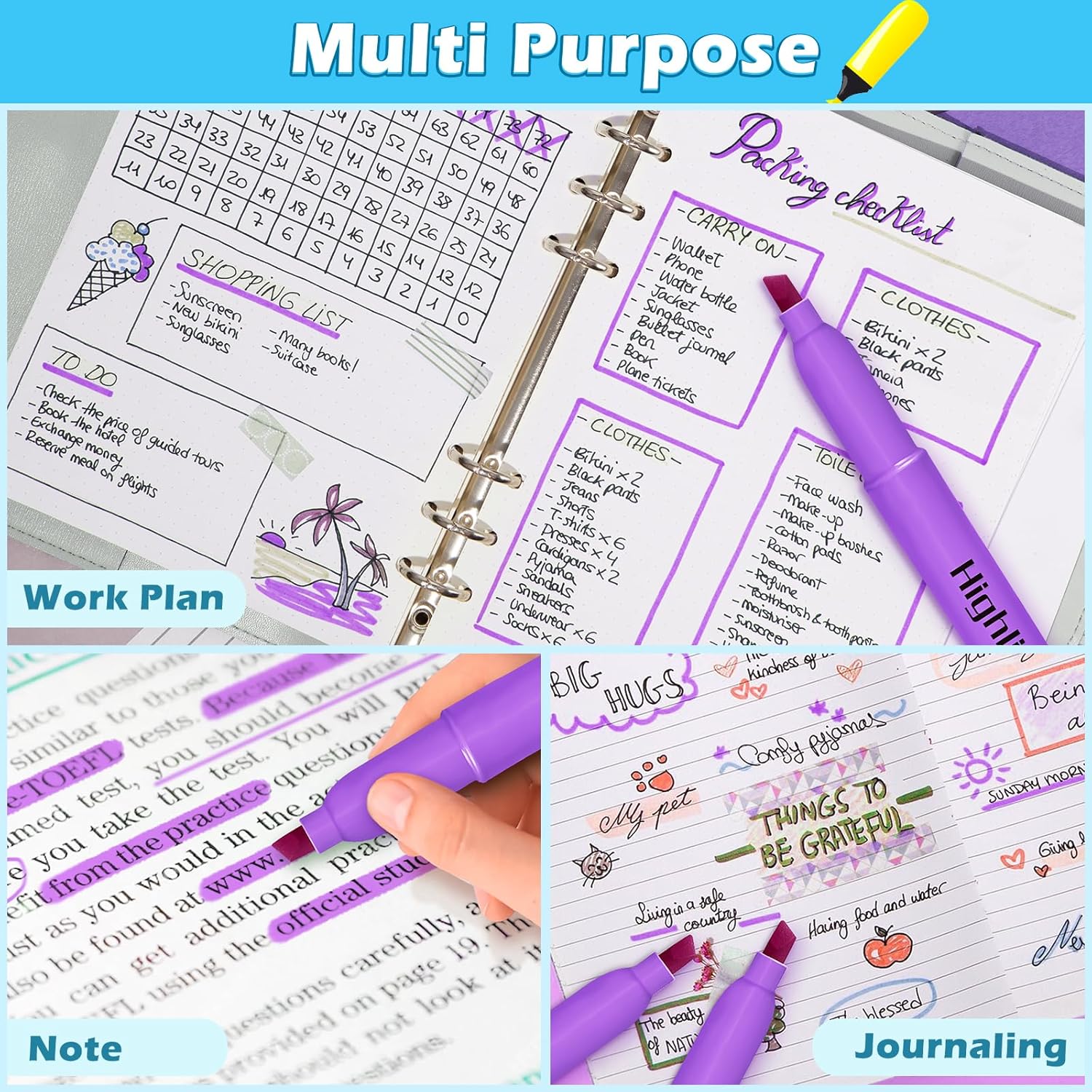 - 30 Fluorescent Purple Highlighter: 30 packs highlighters bulk to help you classify different topics or concepts.Perfect for color coding and highlighting favorite book passages or notes. If you are looking for smooth, pretty, light fluorescent purple highlighters, then these will not disappoint.