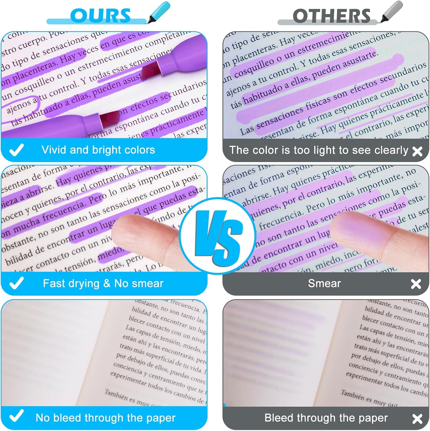 - Fast Drying & Durable: The highlighters pens use durable, quick-drying ink, allowing highlighted marks to be clearly visible without worrying about the ink staining your hands and books. Each highlighter is equipped with a pen cap to avoid ink from drying out for long-lasting use. Please remember to be sure after use keep the pen cap closed to prevent the ink from drying out.