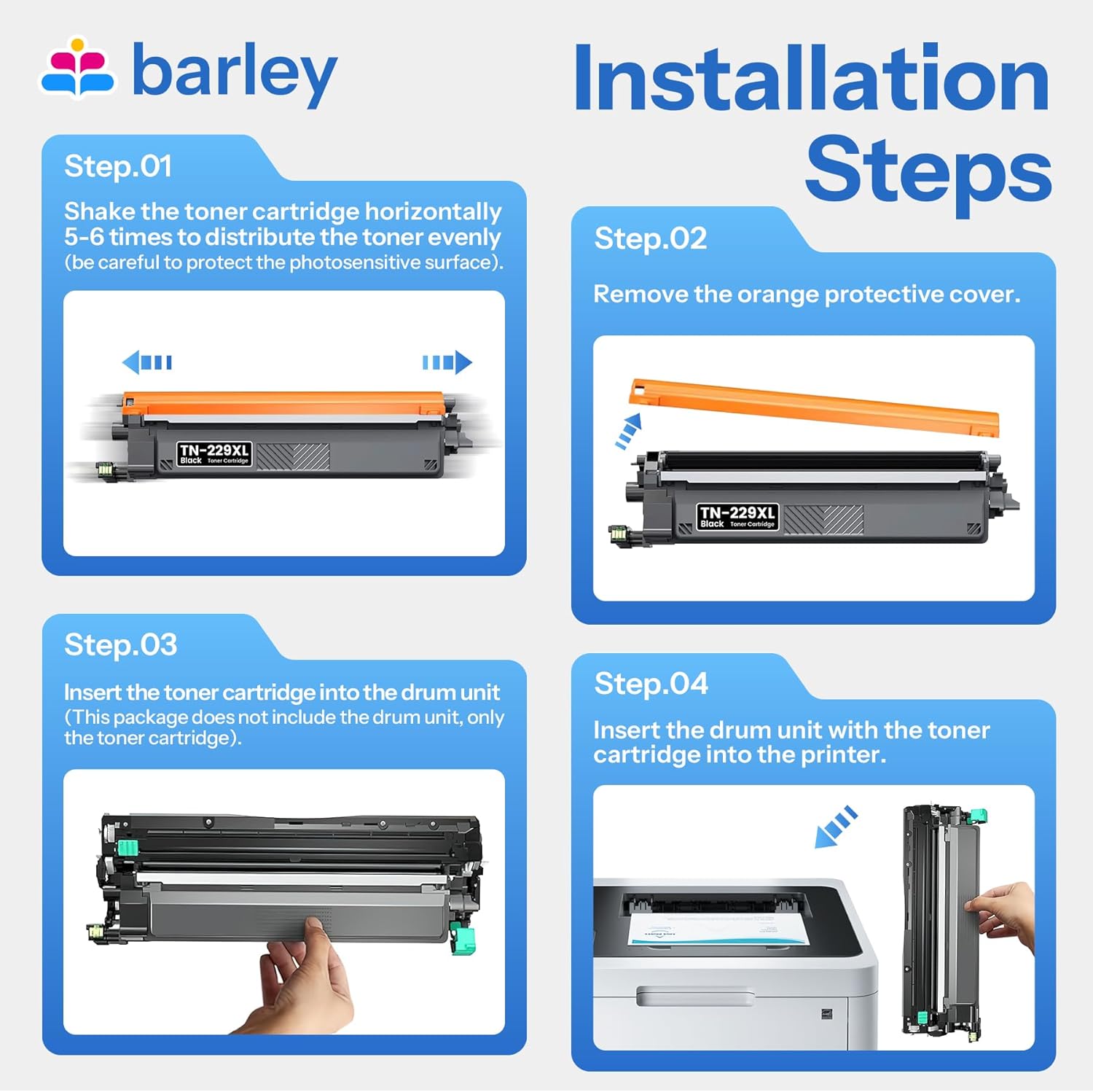 - Products include : TN229XL TN-229XL High Yield Toner Cartridge 4 Pack (1 x TN229XLBK black toner, 1 x TN229XLC cyan toner, 1 x TN229XLY yellow toner, 1 x TN229XLM magenta toner).