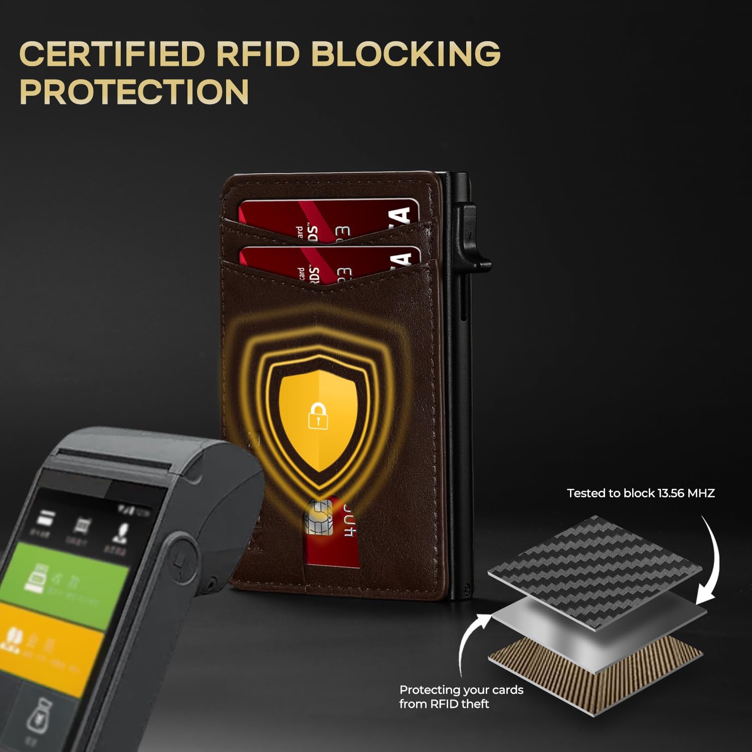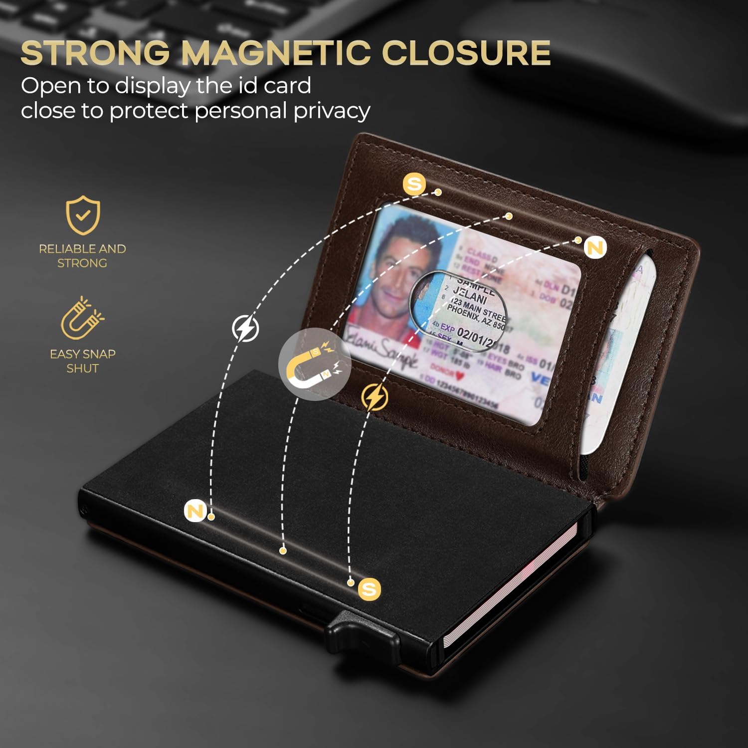 Slim Card Wallet for Men with ID Window – Minimalist RFID Wallet, Pop-Up Function, Ultra Thin Design, Metal Business Card Case Holds 8+ Cards, Gifts for Men, Men's Accessories