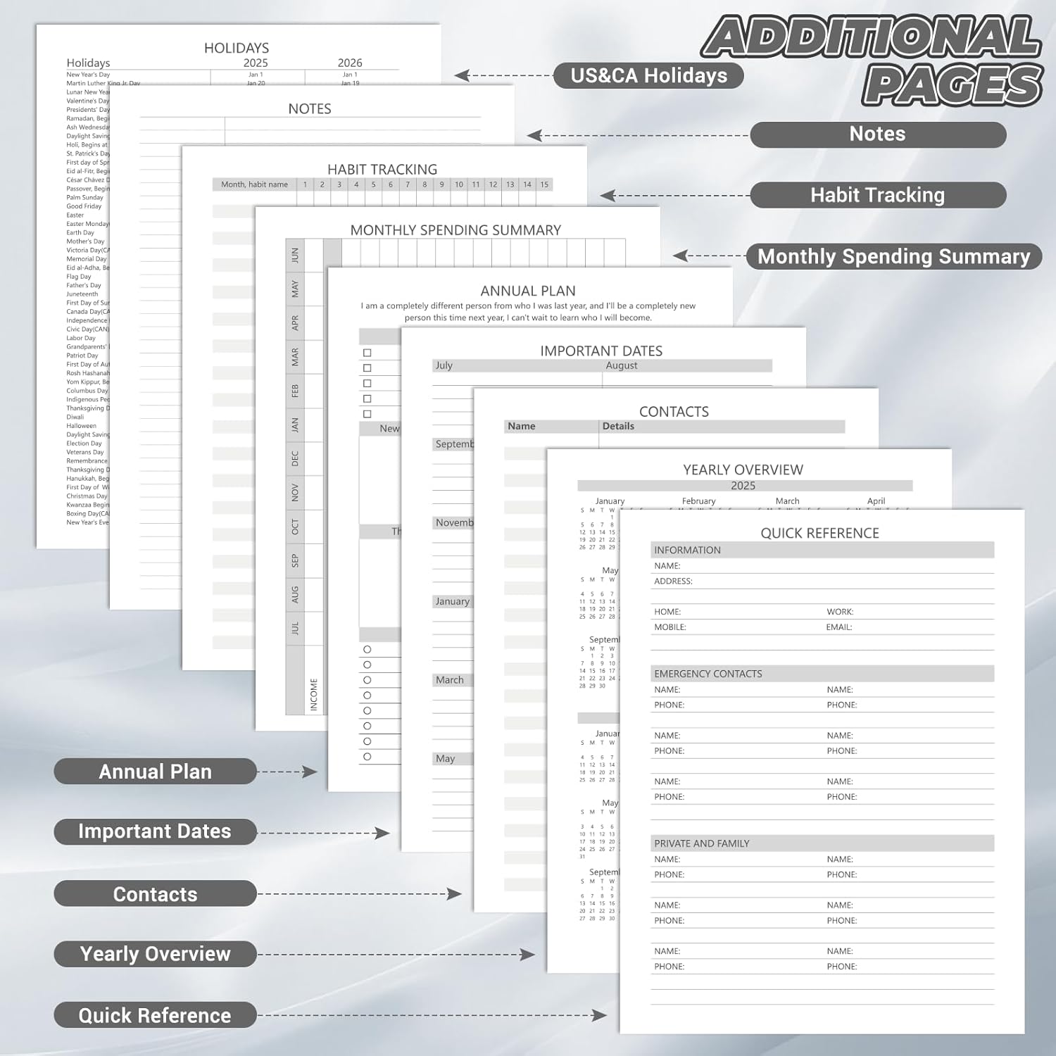 - MONTHLY PAGES: 2025-2026 weekly planner displays US/Canadian holidays and monthly motivational quotes. Agenda planner includes past/previous calendar references so you can better review the past and plan for the future.