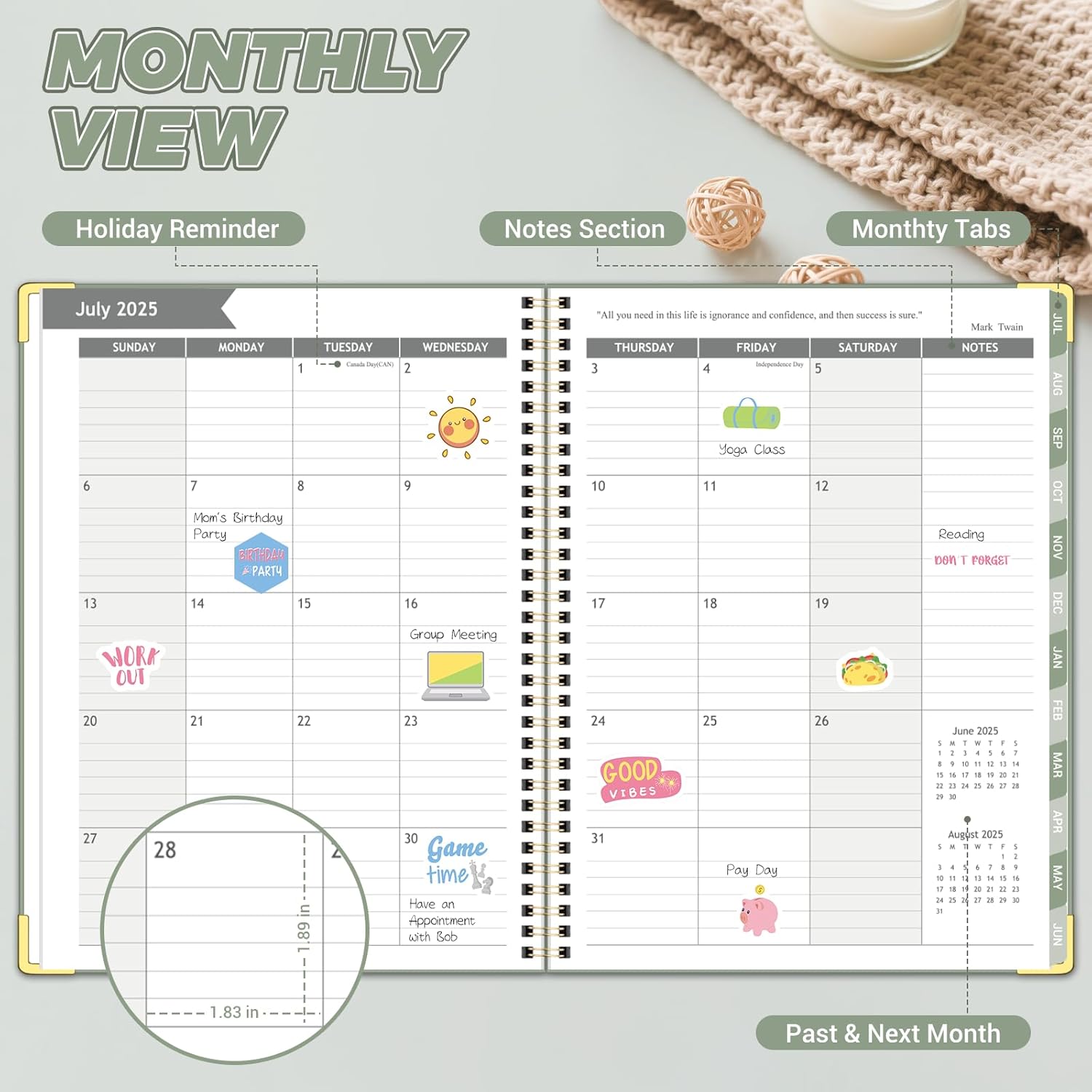 - MONTHLY PAGES: 2025-2026 weekly planner displays US/Canadian holidays and monthly motivational quotes. Agenda planner includes past/previous calendar references so you can better review the past and plan for the future.
