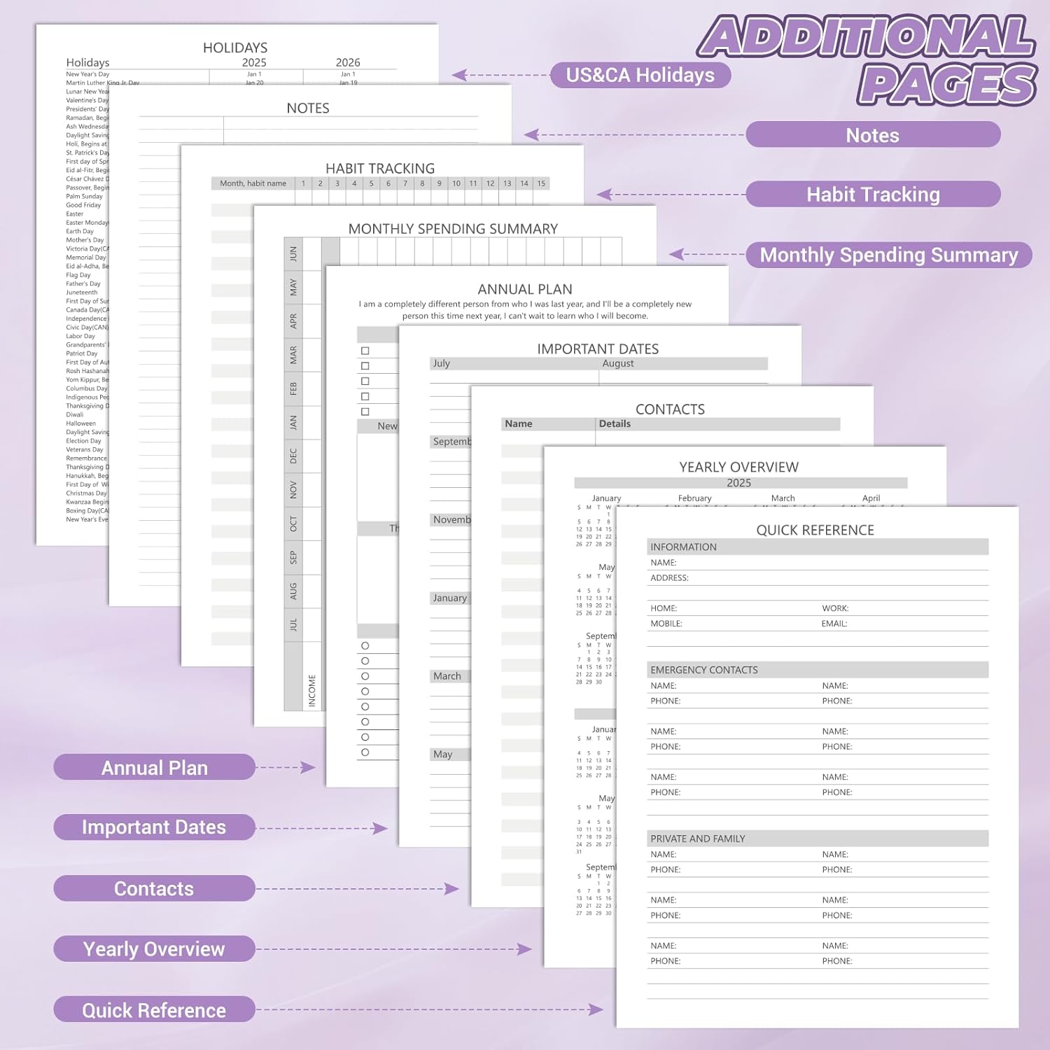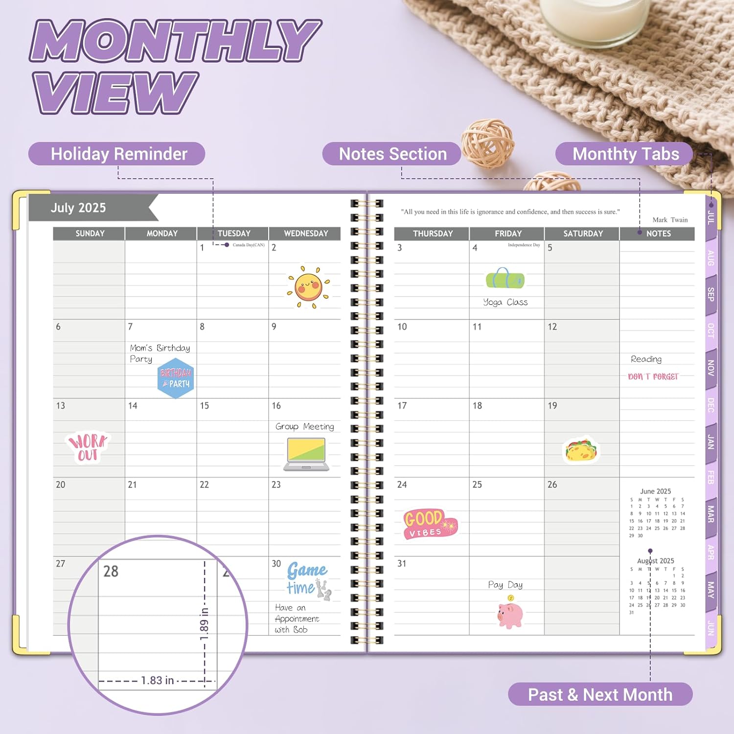 - MONTHLY PAGES: 2025-2026 weekly planner displays US/Canadian holidays and monthly motivational quotes. Agenda planner includes past/previous calendar references so you can better review the past and plan for the future.
