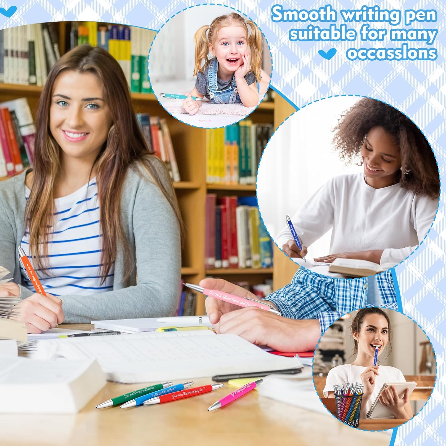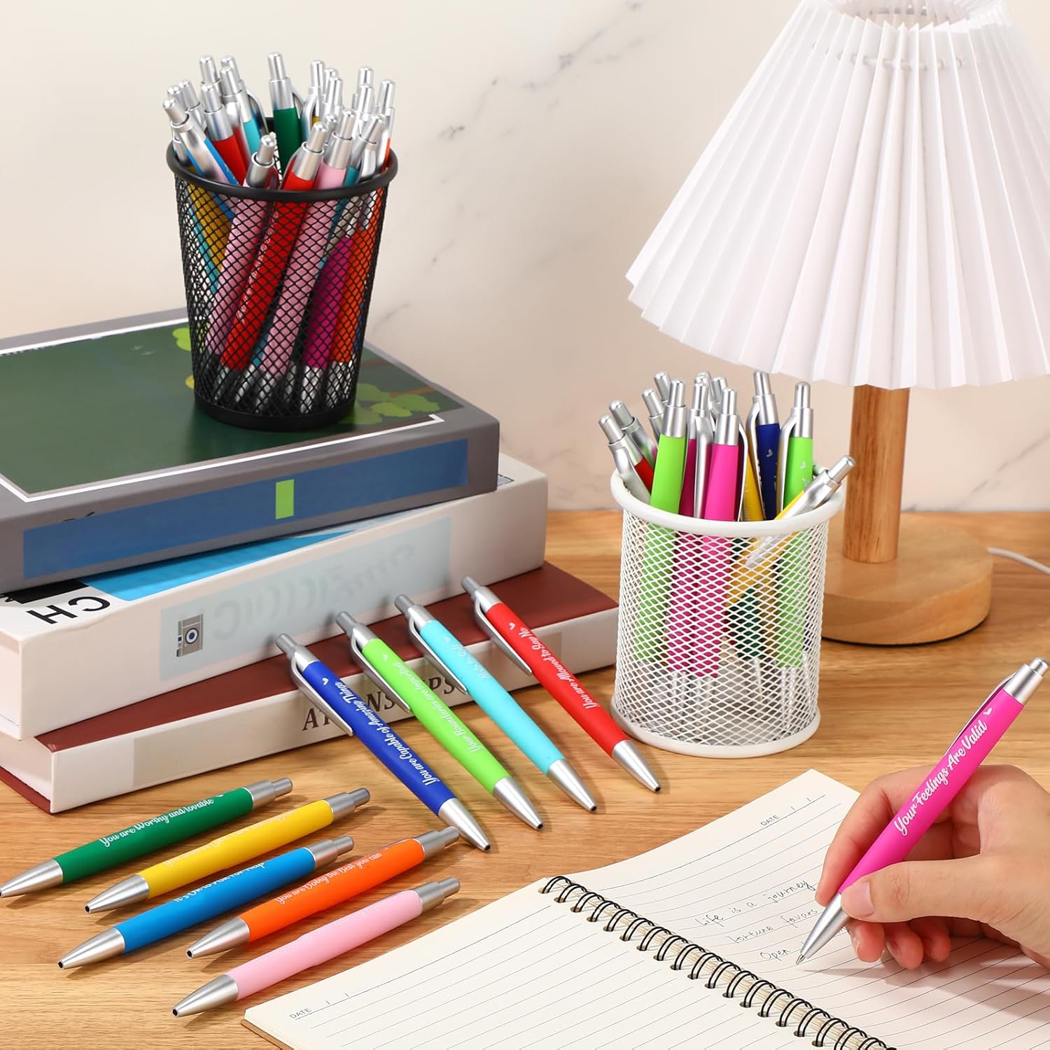 - Mental Health Reminders Design: appreciation pens are printed with various mental health sentences, such as [your feelings are valid], [your boundaries are important ], [you are worthy and lovable], etc., and the message will reminders your employees, giving them encouragement