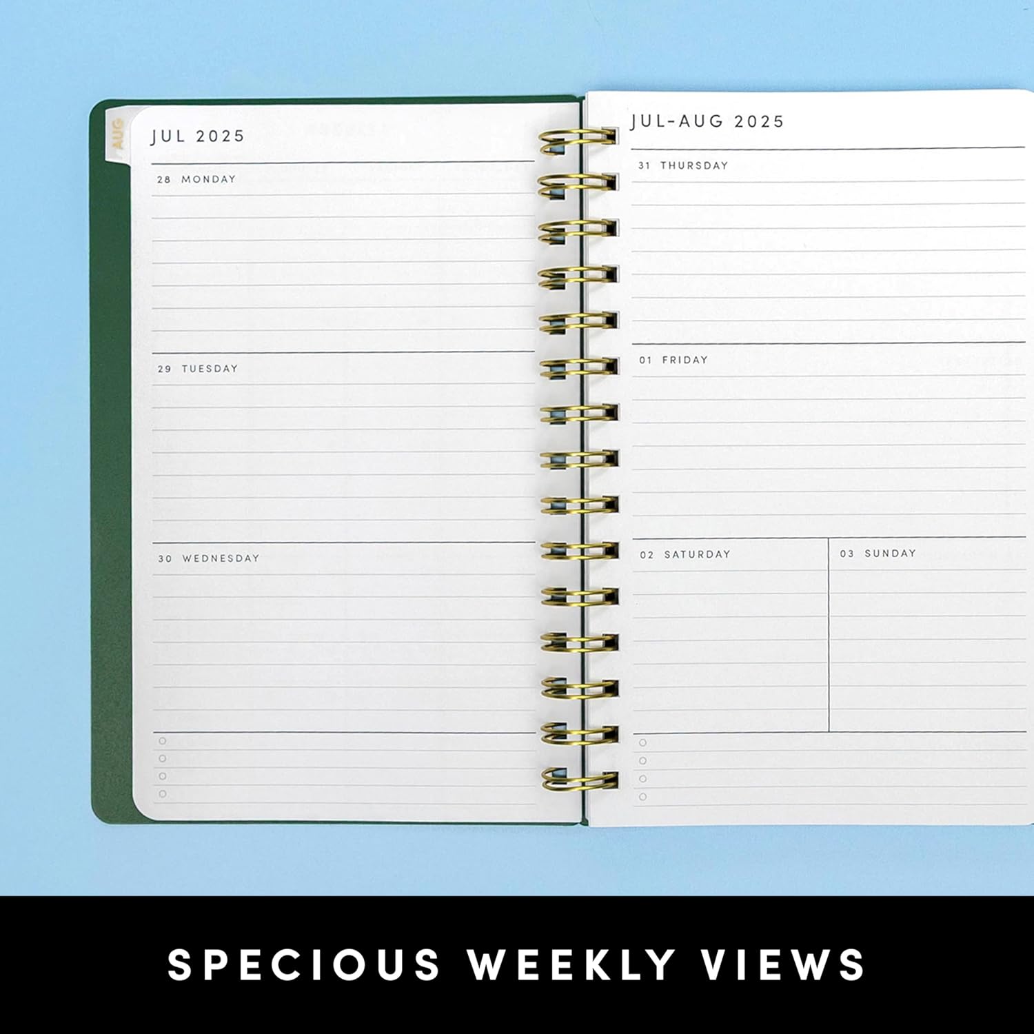 PAPERAGE 17 Month Academic Planner 2025-2026, Weekly & Monthly Spreads, August 2025 - December 2026, Small (5 in x 8 in), Dark Green