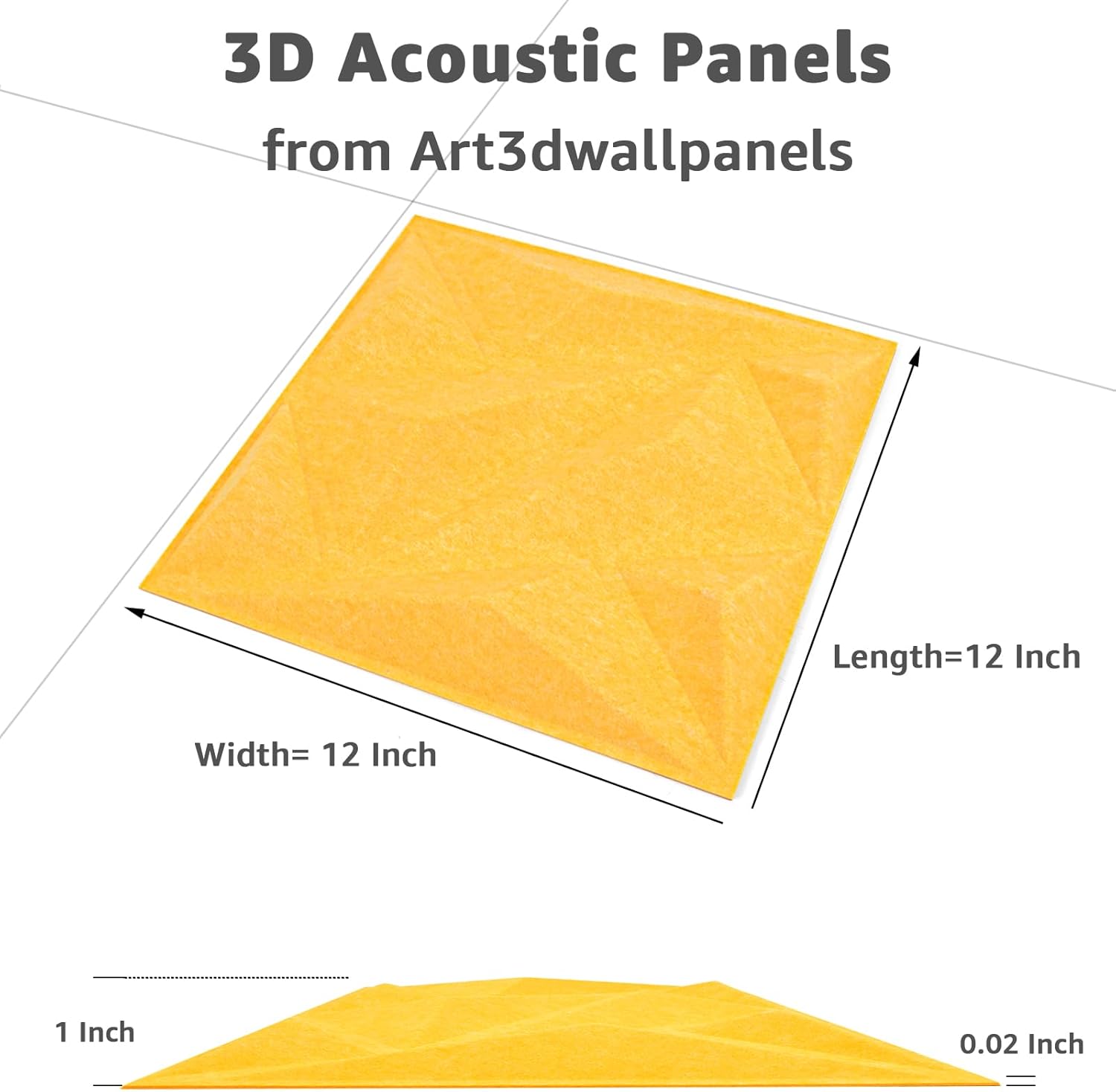 Art3dwallpanels Acoustic Panels 20 Pack Soundproof Wall Panels Sound Dampening Panels, 3D Wall Panels Sound Absorbing Panels, 12" X 12", Yellow without Tape