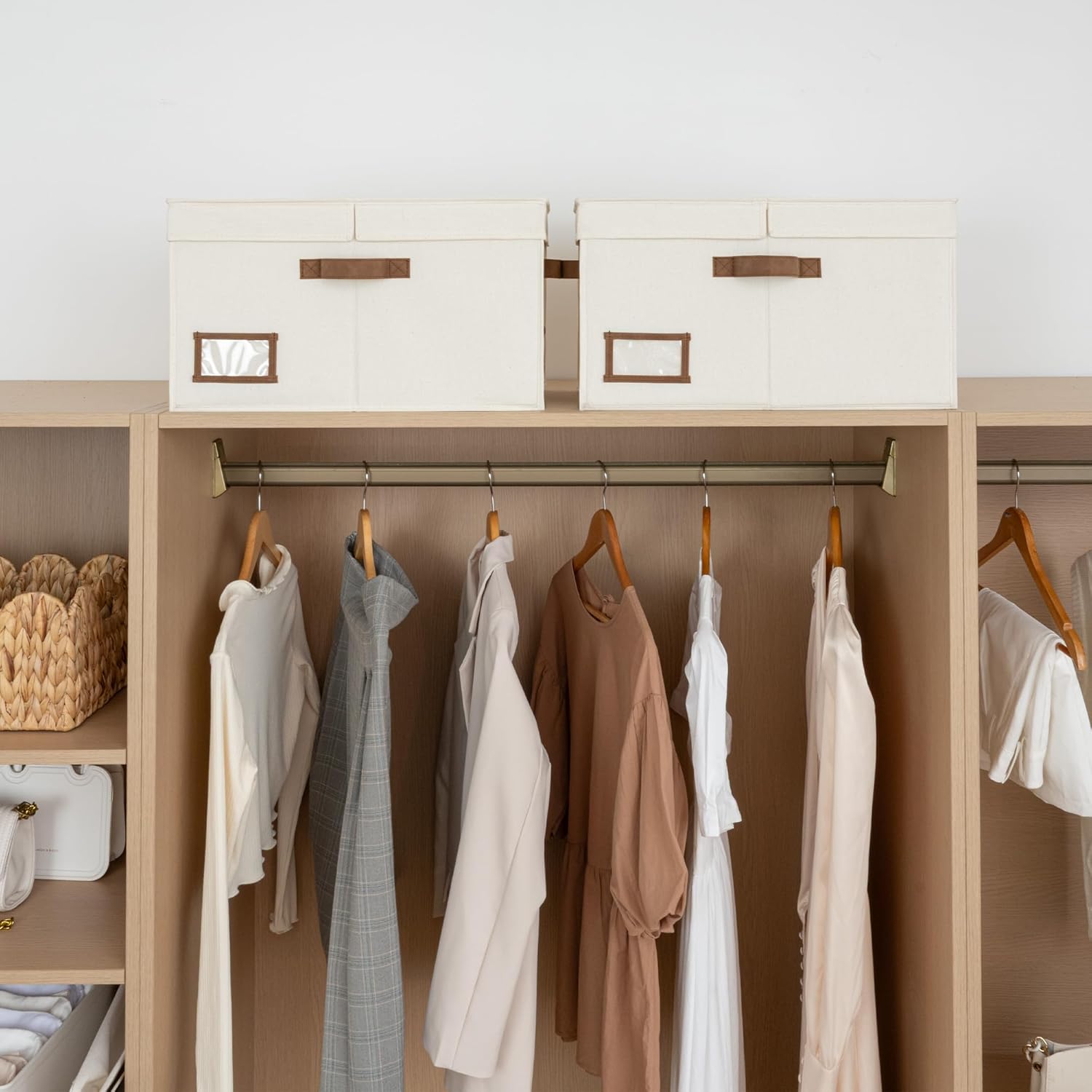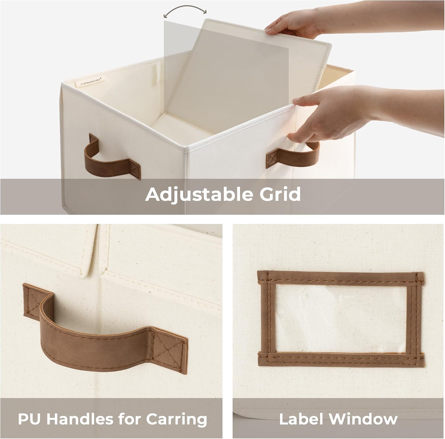 StorageWorks Large Clothes Storage Bins, Fabric Boxes with Divider Board, Baskets for Clothes, Linen Closet Organizers with Lid, Ivory White, 2-Pack