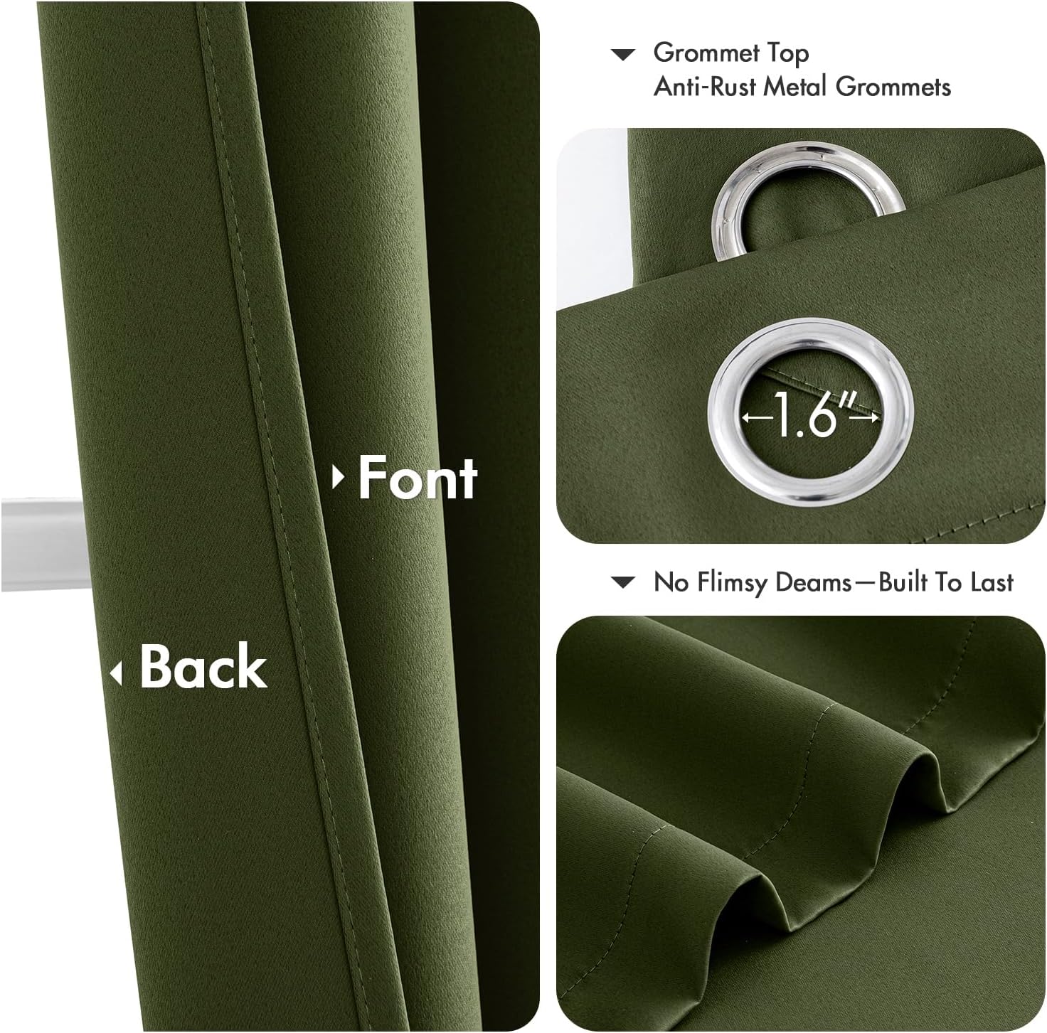 - High-Quality Material: Crafted from high-quality 225GSM polyester fabric, these curtains offer enhanced durability and elegant drape. The soft blackout material features triple-layer weaving technology, with a middle layer of black yarn for superior light blocking and privacy. Both sides feature the same refined color, ensuring a seamless look that elevates your home’s aesthetic with understated sophistication