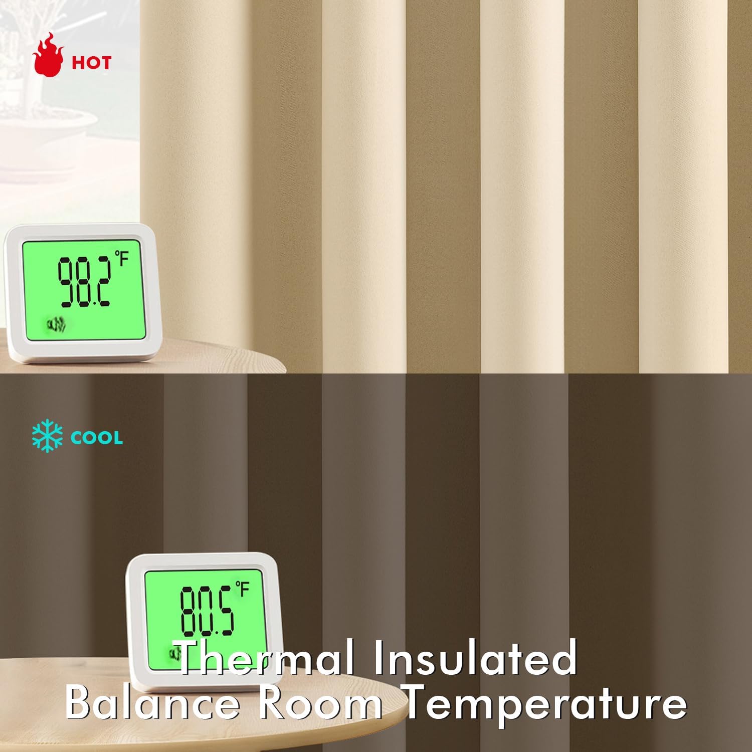 - High-Quality Material: Crafted from high-quality 225GSM polyester fabric, these curtains offer enhanced durability and elegant drape. The soft blackout material features triple-layer weaving technology, with a middle layer of black yarn for superior light blocking and privacy. Both sides feature the same refined color, ensuring a seamless look that elevates your home’s aesthetic with understated sophistication