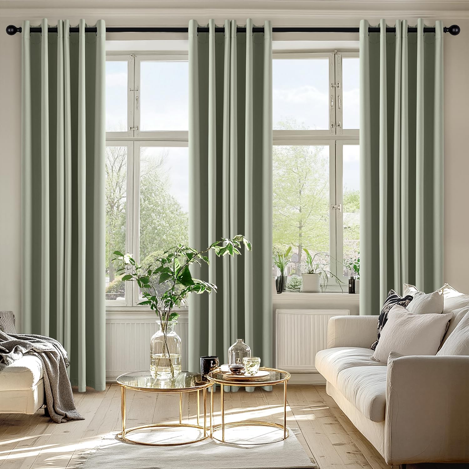 - High-Quality Material: Crafted from high-quality 225GSM polyester fabric, these curtains offer enhanced durability and elegant drape. The soft blackout material features triple-layer weaving technology, with a middle layer of black yarn for superior light blocking and privacy. Both sides feature the same refined color, ensuring a seamless look that elevates your home’s aesthetic with understated sophistication