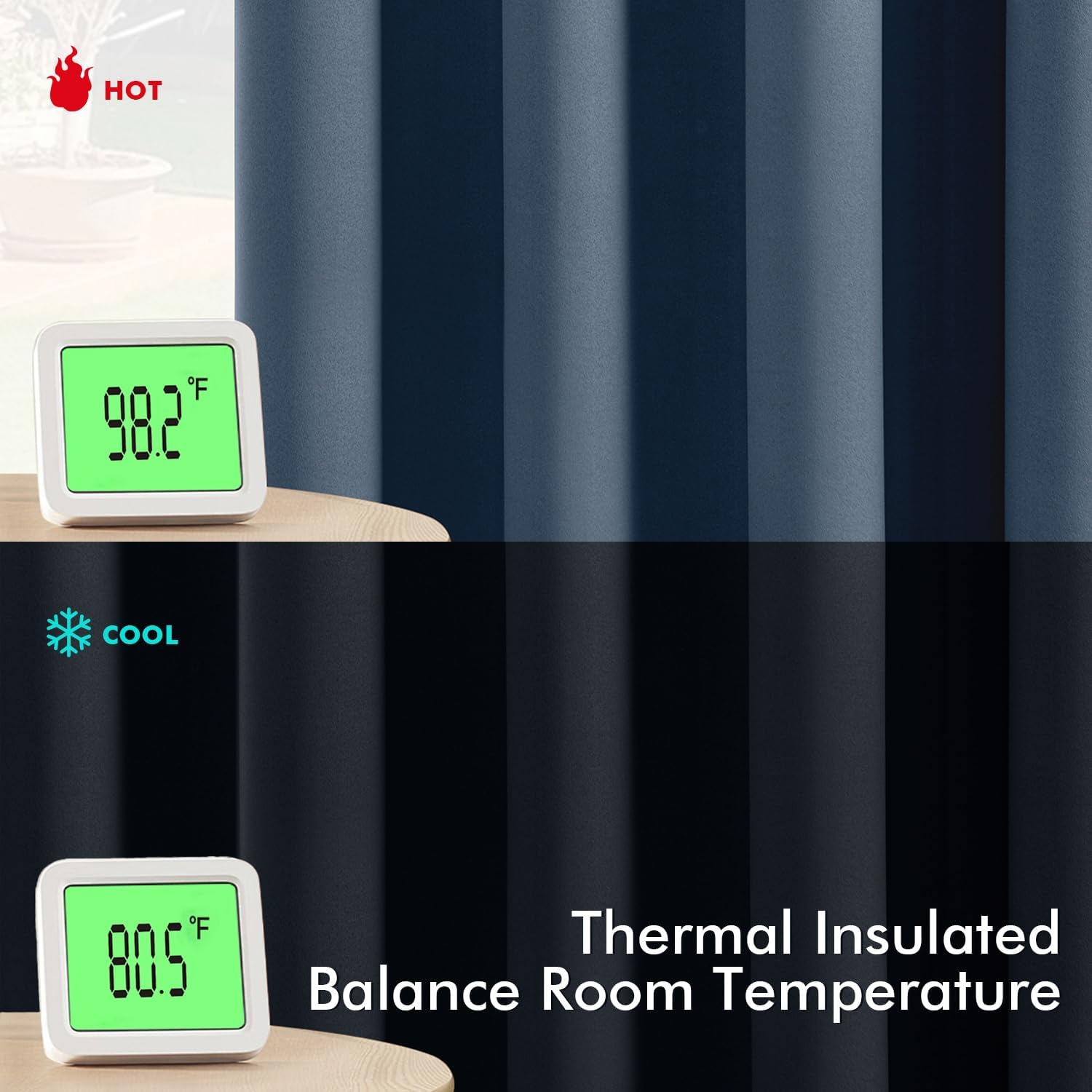 - Energy Saving: The thermal-insulated fabric keeps heat out in summer and retains warmth in winter, reducing your reliance on AC/heating and lowering energy costs by up to 15%. They are perfect for living rooms, bedrooms, patios, villas and offices
