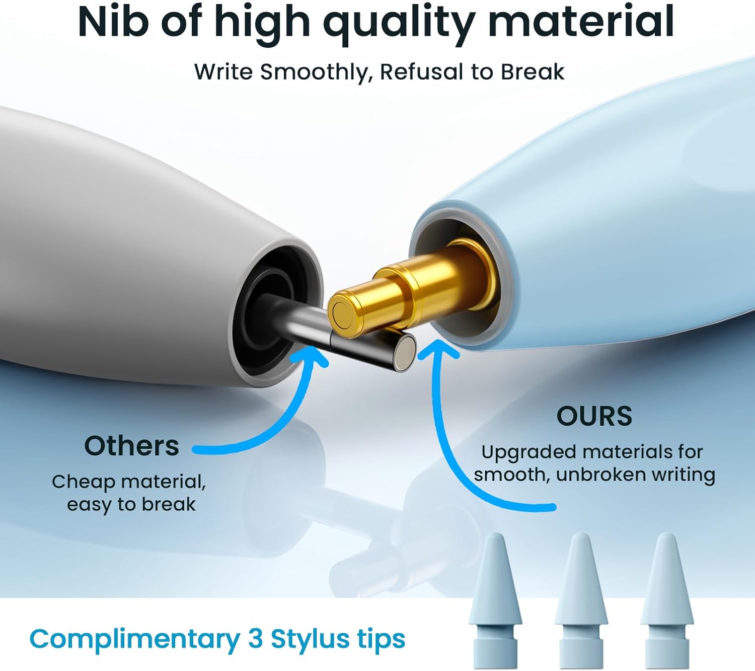 - 💡【Multiple Replaceable Long-lasting Nibs】The nibs of our iPad pens are extremely long-lasting and will last a long time without wear and tear. And we also come with 3replaceable pen tips. And it's very easy to replace the nib. This pencil looks great and has a stylish design. Our iPad Pencil features cutting-edge ergonomics that provide a comfortable grip and fit seamlessly into your hand. Its balanced weight and intuitive design ensure fatigue-free use.