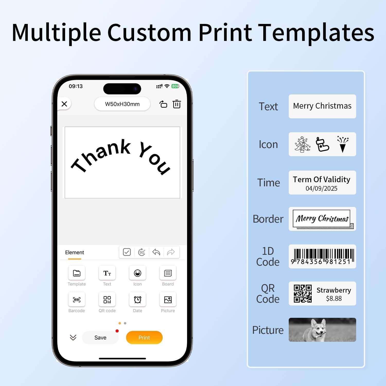 - Smart Label Printer for Home Enhanced Image Quality: The App delivers precise image processing capabilities, resulting in a high-resolution and clear output; enhanced aesthetic appeal, formality, and richness