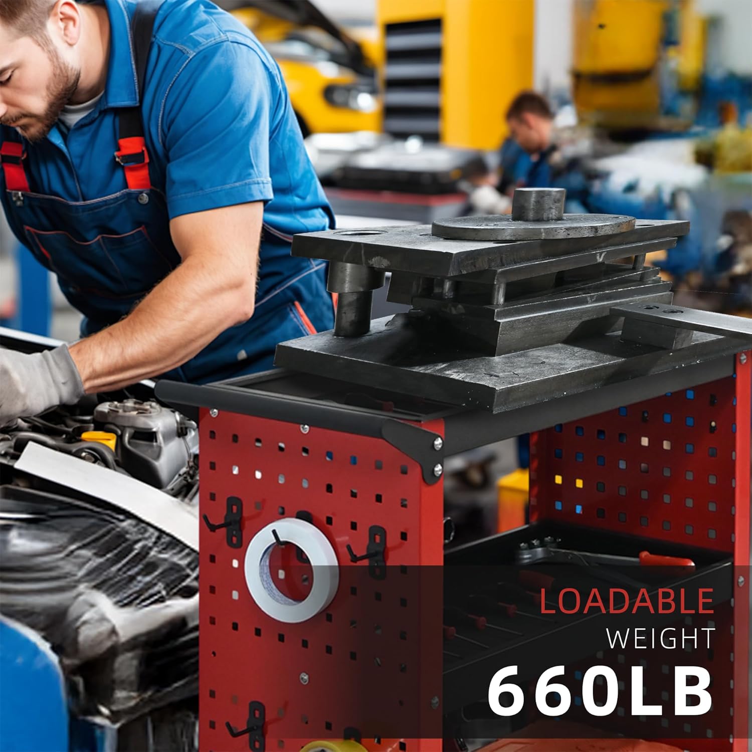 3 Tier Rolling Tool Cart on Wheels, 660LBS Load Capacity Heavy Duty Utility with Pegboard for Repair Shop, Garage, Warehouse, Workshop