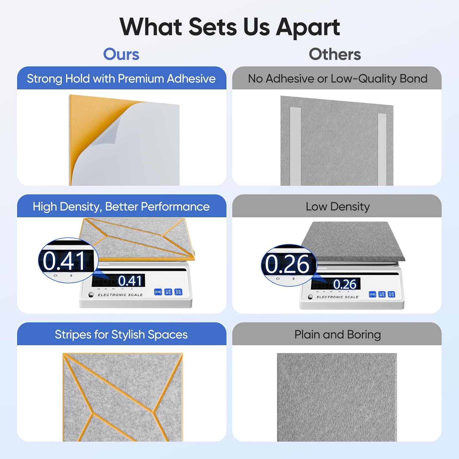 - Effortless Installation -- Each acoustic panel comes with a strong self-adhesive backing—just peel and stick. No tools, nails, or extra adhesives needed.