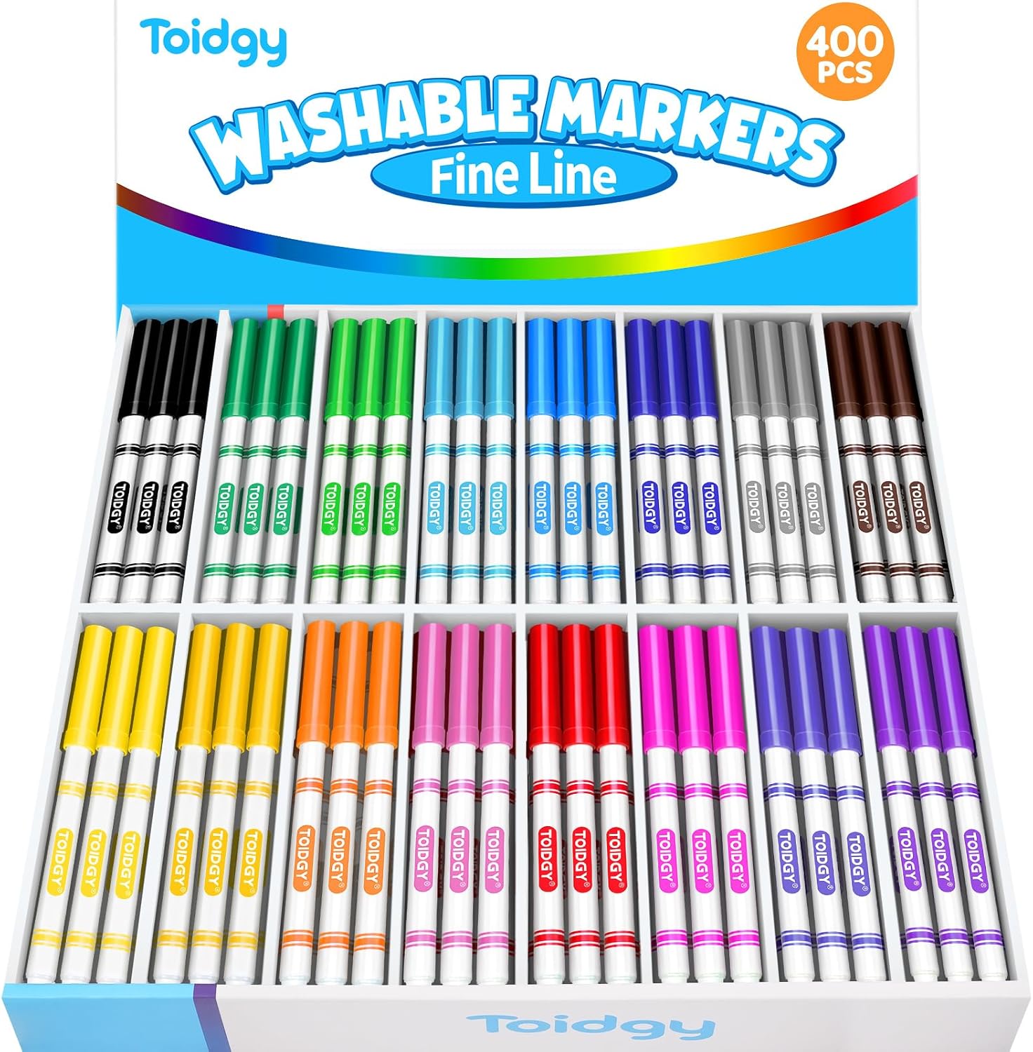 - Ultimate Bulk Washable Markers: Ready to bring a burst of color to your creative adventures? Our 400 PCS markers bulk, available in 16 vibrant colors with 25 counts per shade, is the perfect choice. This colorful bulk sparks imagination and artistic expression, making it an ideal fit for kids school supplies class pack, art classroom must haves, homeschool supplies, and creative studios.