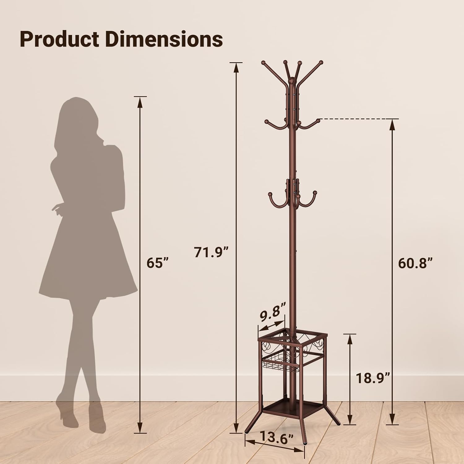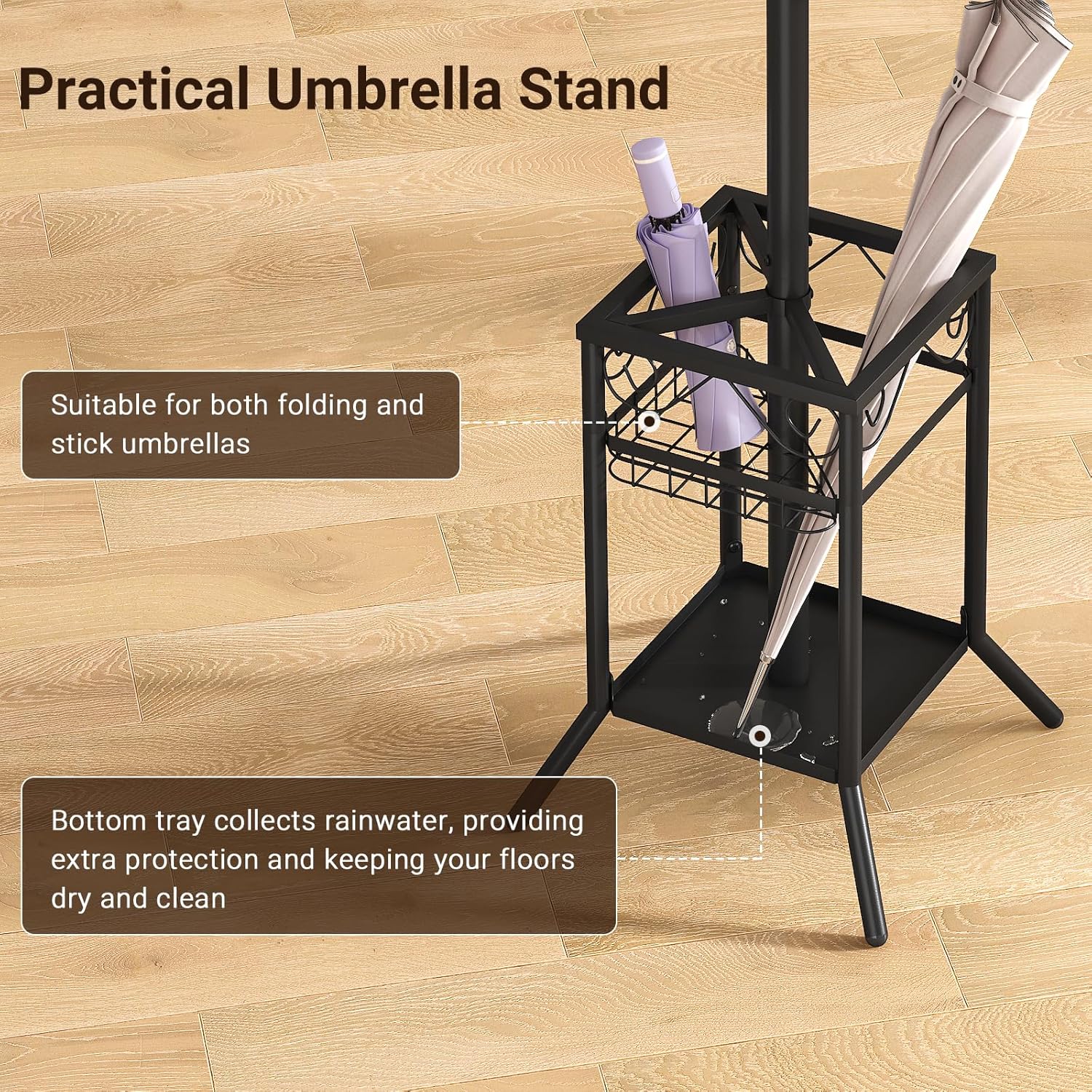 - Stylish & Functional: This coat rack with umbrella holder not only serves as a chic coat hanger stand but also enhances any space. Available in three elegant colors, it seamlessly fits into your hallway, foyer, closet, bedroom, office, or any corner needing an organizational touch