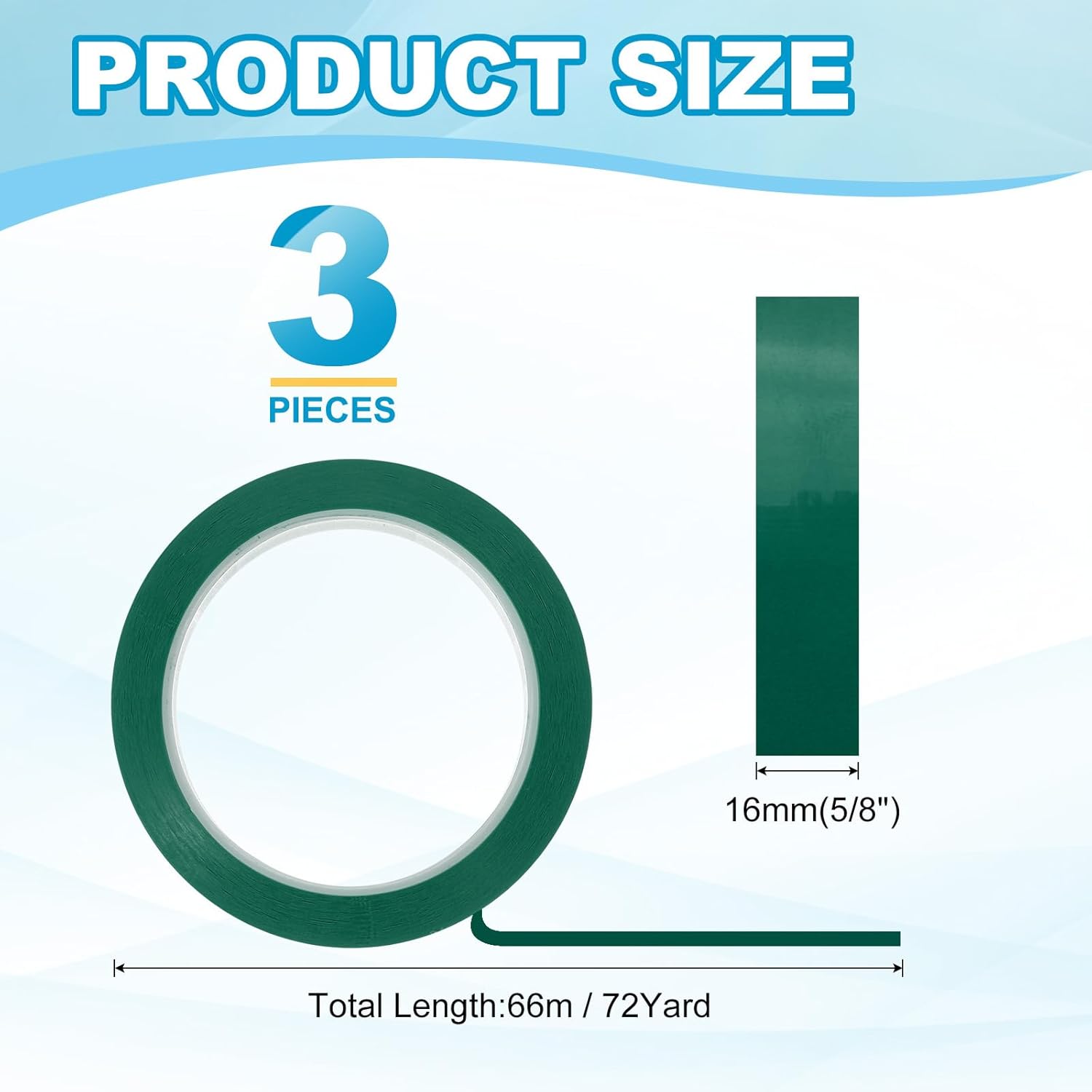 MECCANIXITY Whiteboard Tape 5/8" x 72 Yard Pinstripe Graphic Chart Line Grid Marking Tapes for Classroom Office Dry Erase Board Art, Green, Pack of 3