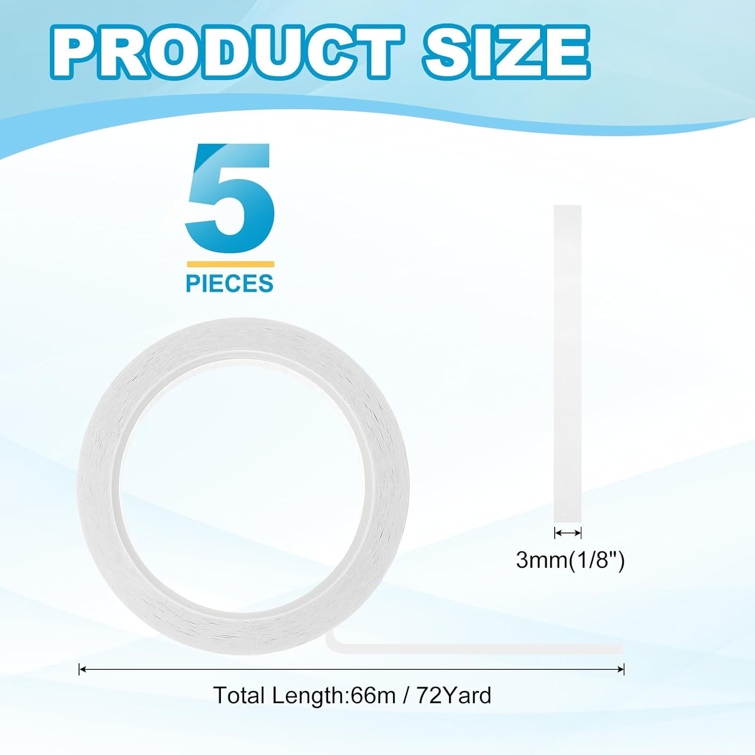 - This pinstripe tape provide here is in the size of: Width: 3mm(1/8"), Length: 66m(72 Yard); In the package of: 5 x Chart Line Tape