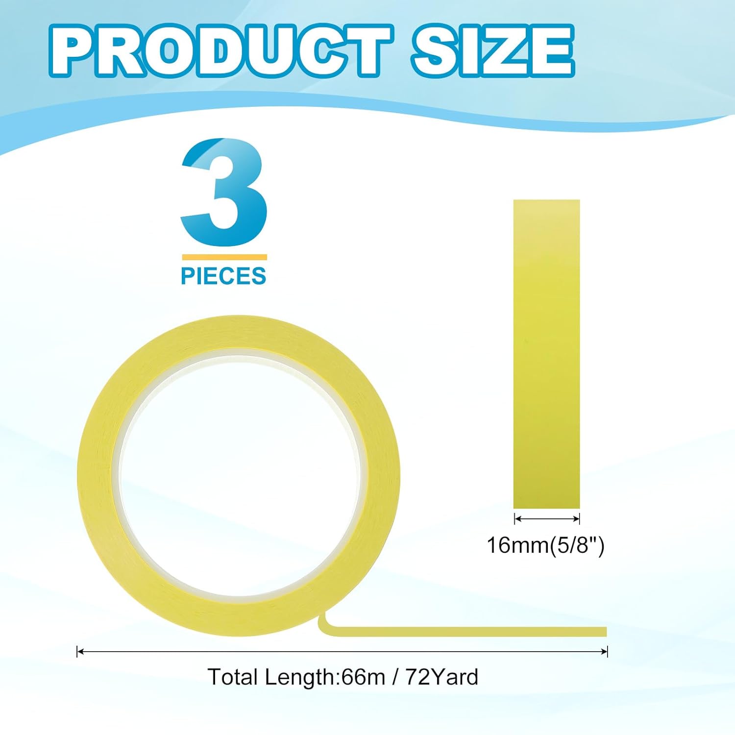 - This pinstripe tape provide here is in the size of: Width: 16mm(5/8"), Length: 66m(72 Yard); In the package of: 3 x Chart Line Tape