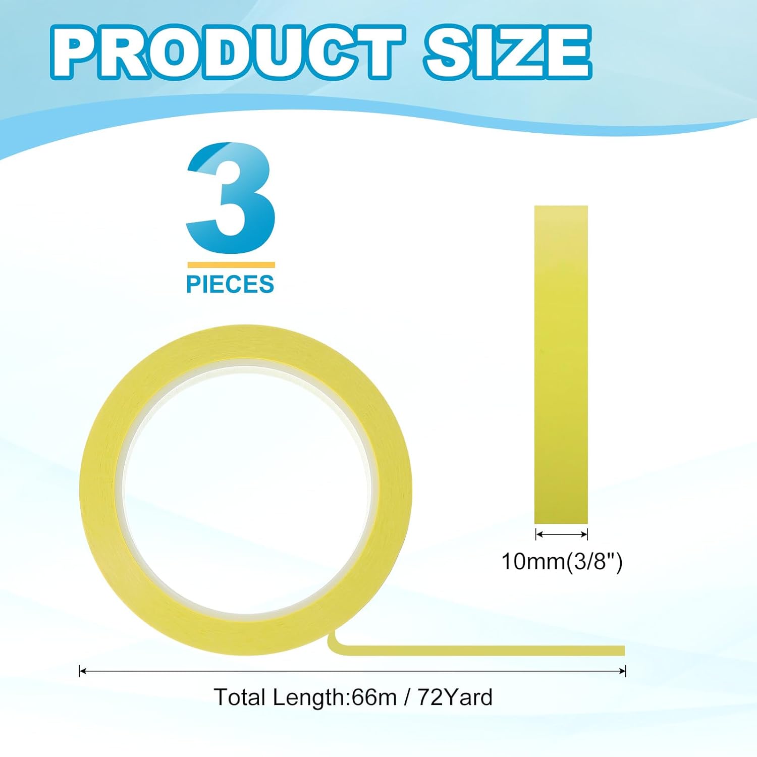 MECCANIXITY Whiteboard Tape 3/8" x 72 Yard Pinstripe Graphic Chart Line Grid Marking Tapes for Classroom Office Dry Erase Board Art, Light Yellow, Pack of 3