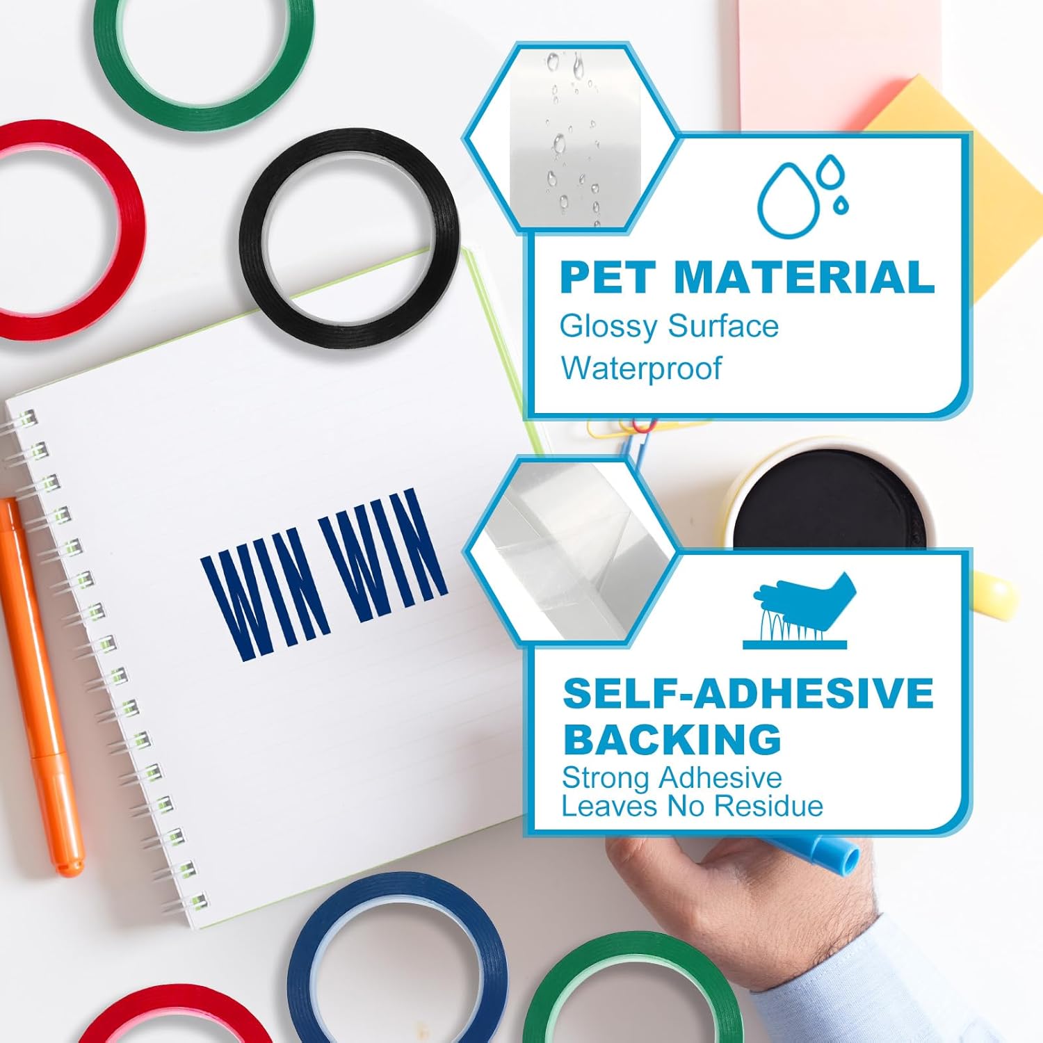 MECCANIXITY Whiteboard Tape 5/16" x 72 Yard Pinstripe Graphic Chart Line Grid Marking Tapes for Classroom Office Dry Erase Board Art, Clear, Pack of 3