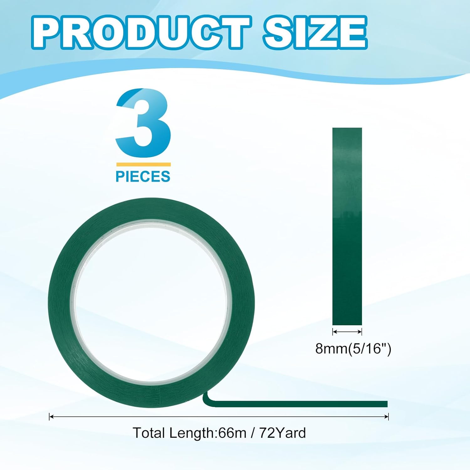 MECCANIXITY Whiteboard Tape 5/16" x 72 Yard Pinstripe Graphic Chart Line Grid Marking Tapes for Classroom Office Dry Erase Board Art, Green, Pack of 3