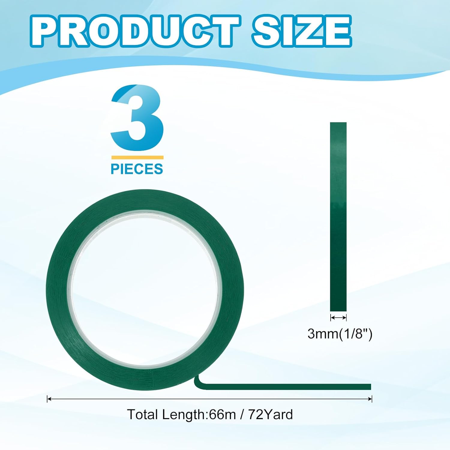 MECCANIXITY Whiteboard Tape 1/8" x 72 Yard Pinstripe Graphic Chart Line Grid Marking Tapes for Classroom Office Dry Erase Board Art, Green, Pack of 3