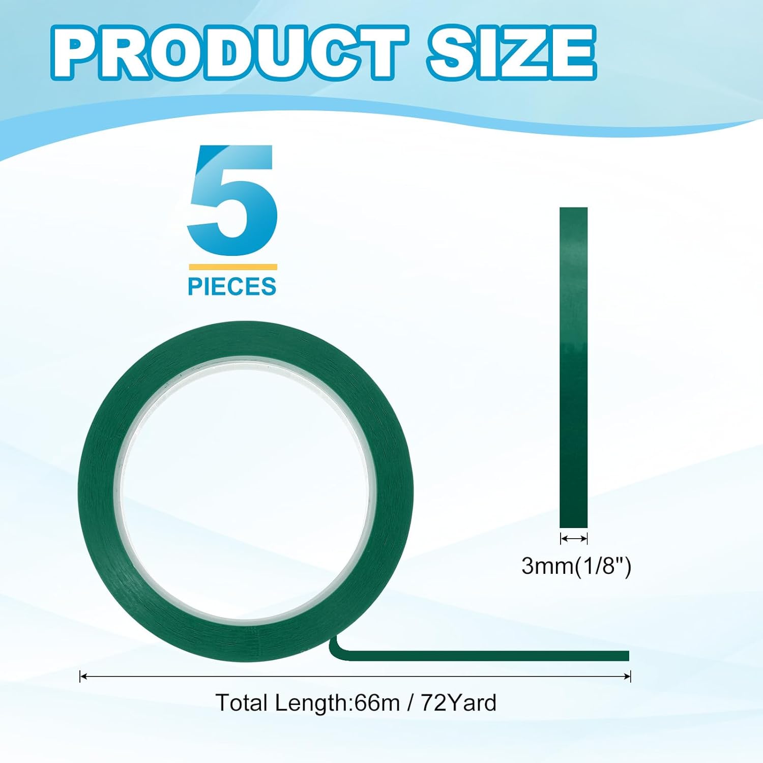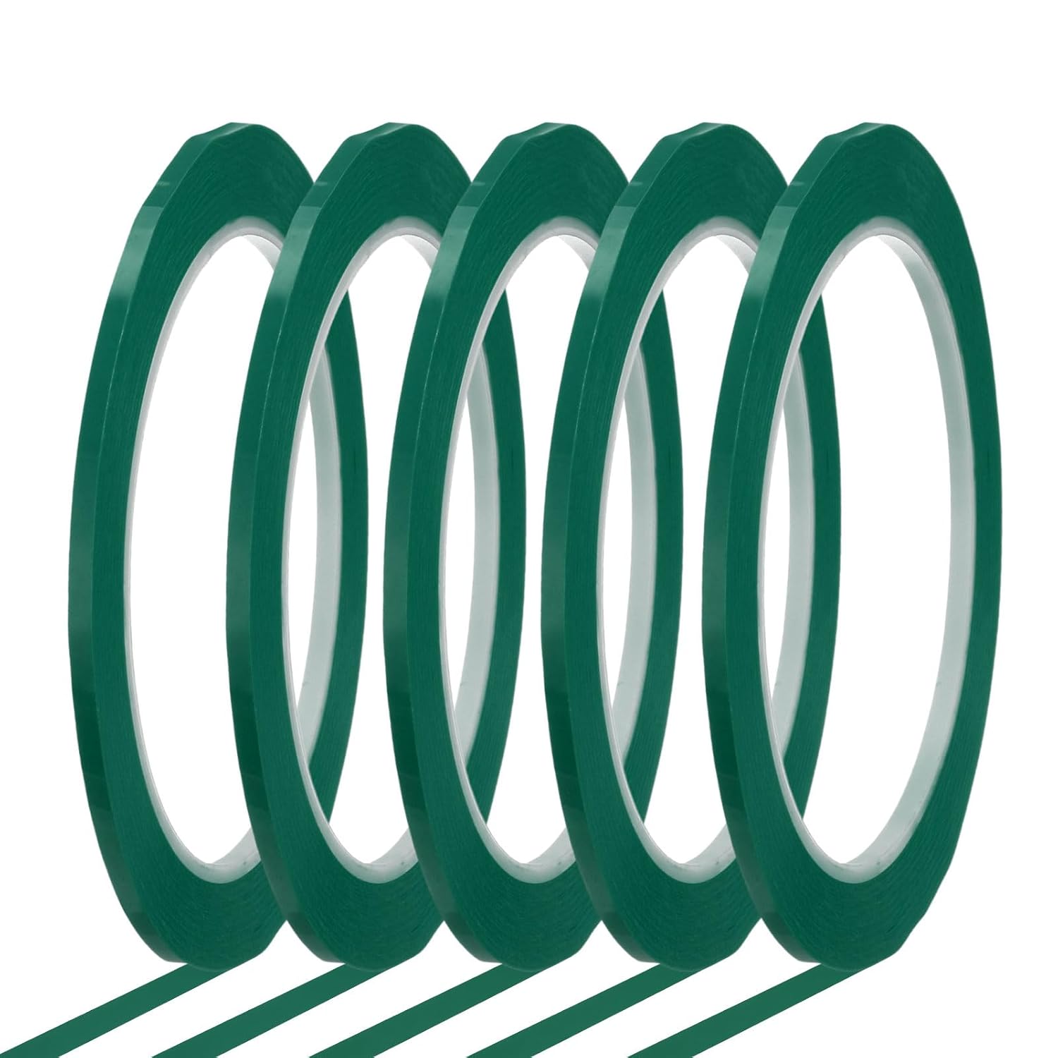 MECCANIXITY Whiteboard Tape 1/8" x 72 Yard Pinstripe Graphic Chart Line Grid Marking Tapes for Classroom Office Dry Erase Board Art, Green, Pack of 5
