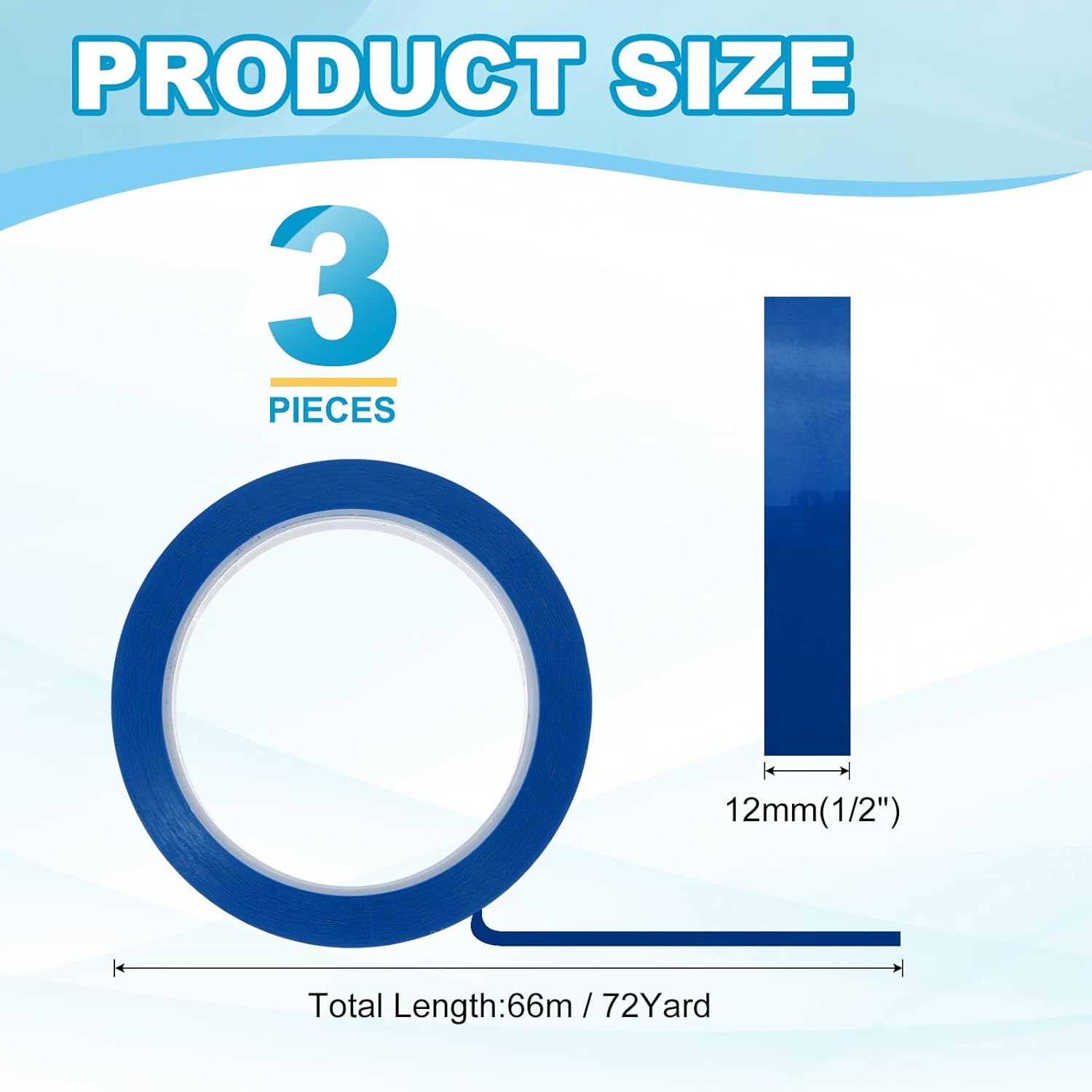 - This pinstripe tape provide here is in the size of: Width: 12mm(1/2"), Length: 66m(72 Yard); In the package of: 3 x Chart Line Tape