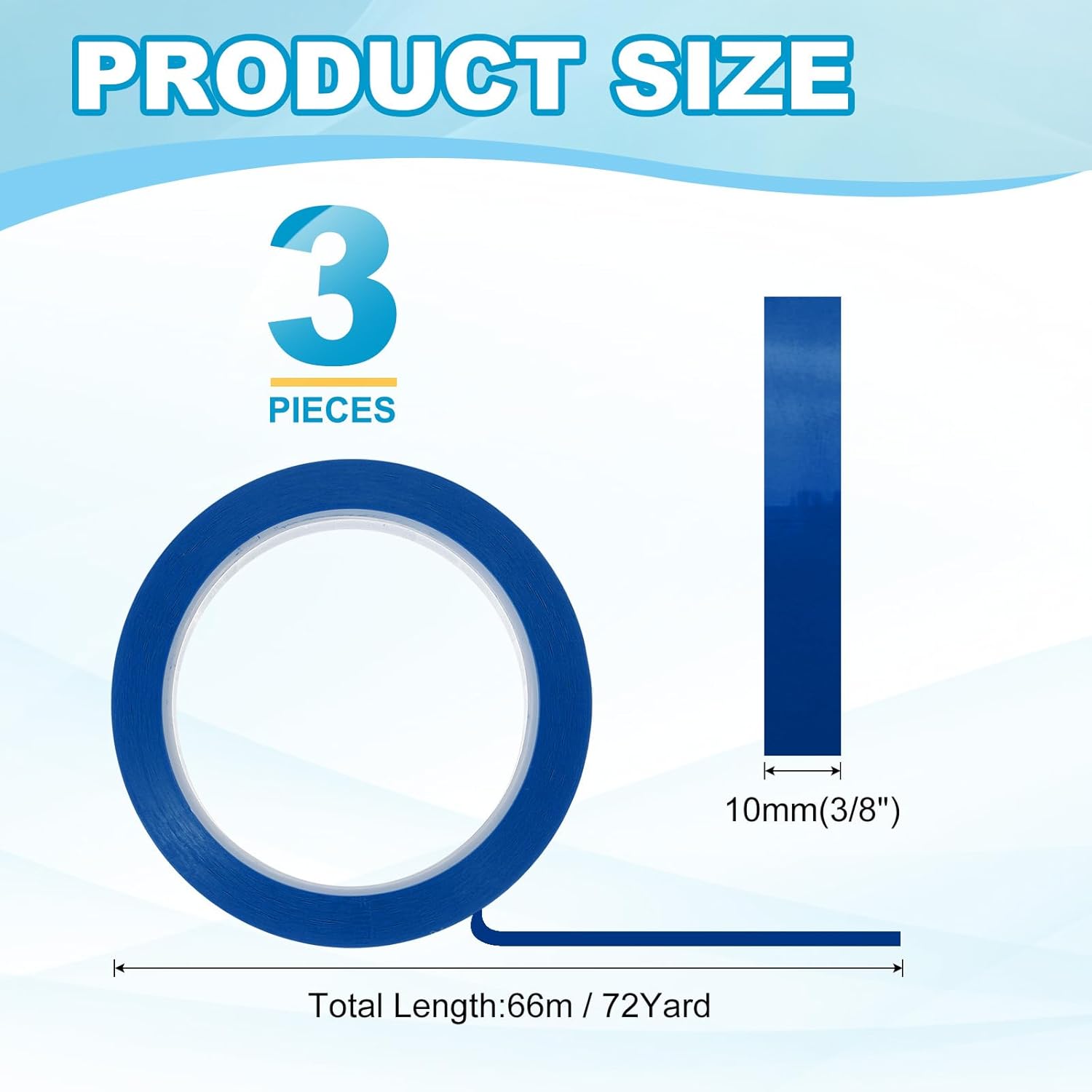 - This pinstripe tape provide here is in the size of: Width: 10mm(3/8"), Length: 66m(72 Yard); In the package of: 3 x Chart Line Tape
