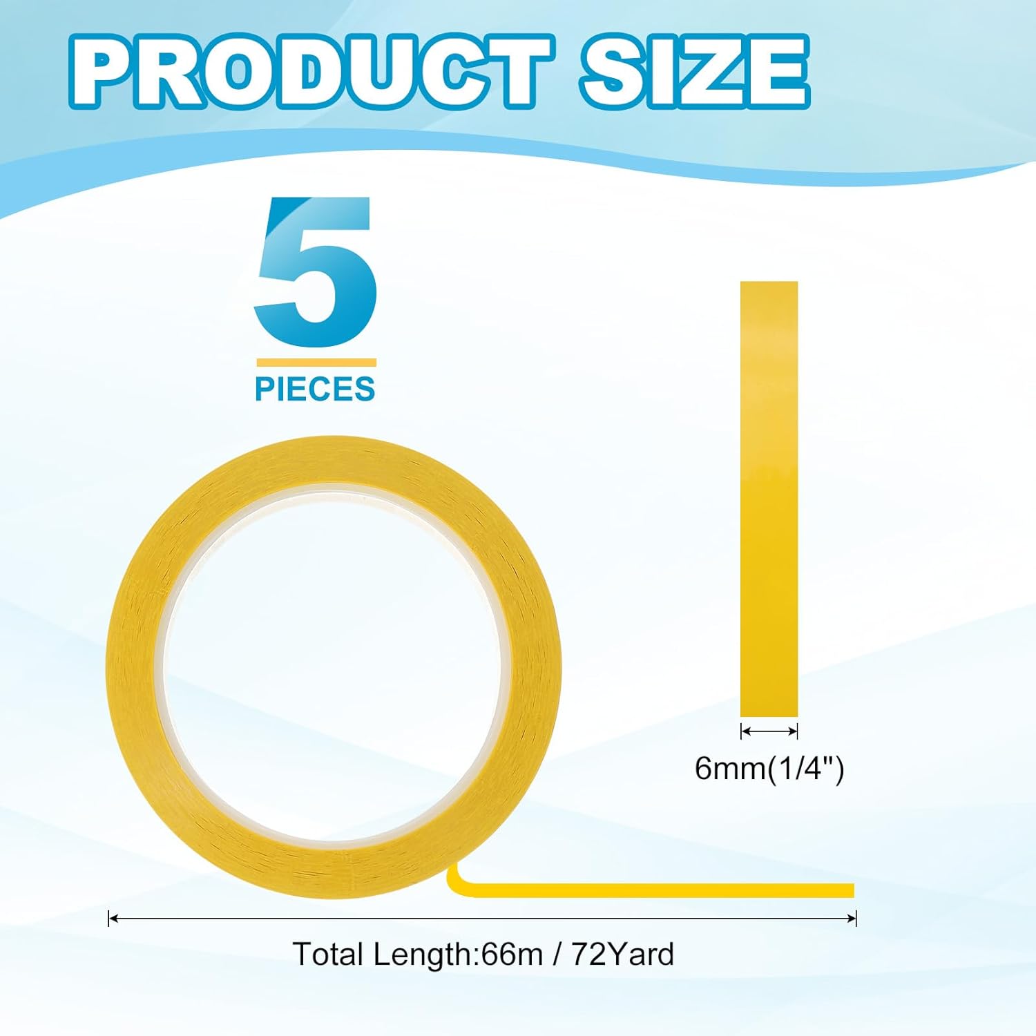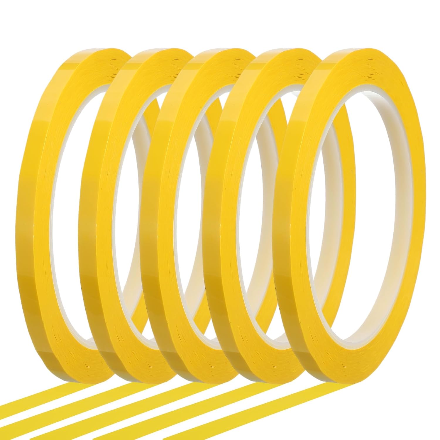 MECCANIXITY Whiteboard Tape 1/4" x 72 Yard Pinstripe Graphic Chart Line Grid Marking Tapes for Classroom Office Dry Erase Board Art, Dark Yellow, Pack of 5