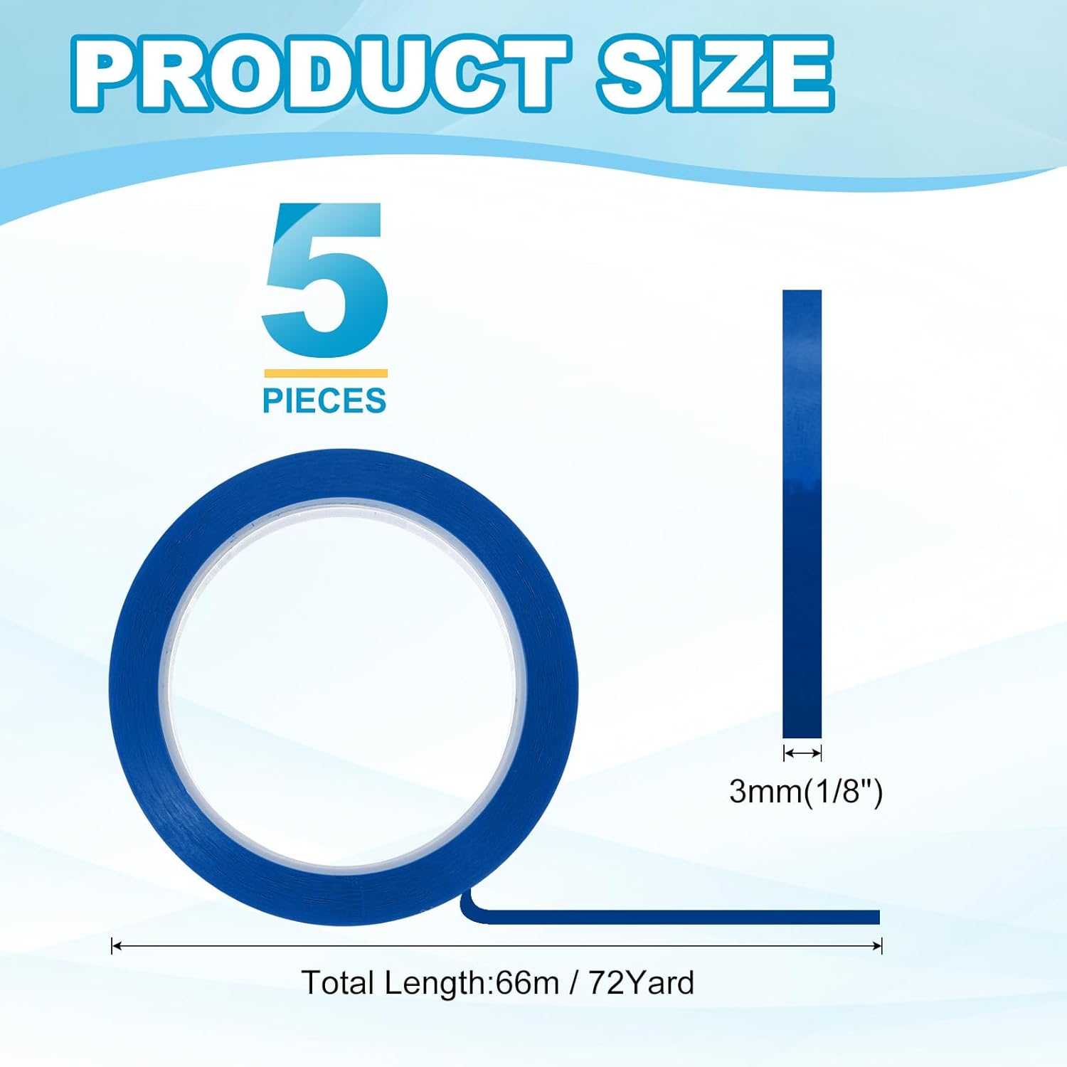MECCANIXITY Whiteboard Tape 1/8" x 72 Yard Pinstripe Graphic Chart Line Grid Marking Tapes for Classroom Office Dry Erase Board Art, Blue, Pack of 5