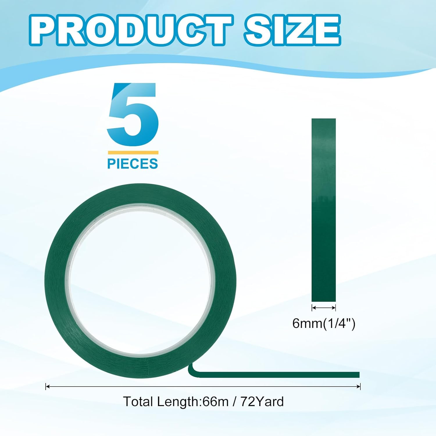 MECCANIXITY Whiteboard Tape 1/4" x 72 Yard Pinstripe Graphic Chart Line Grid Marking Tapes for Classroom Office Dry Erase Board Art, Green, Pack of 5