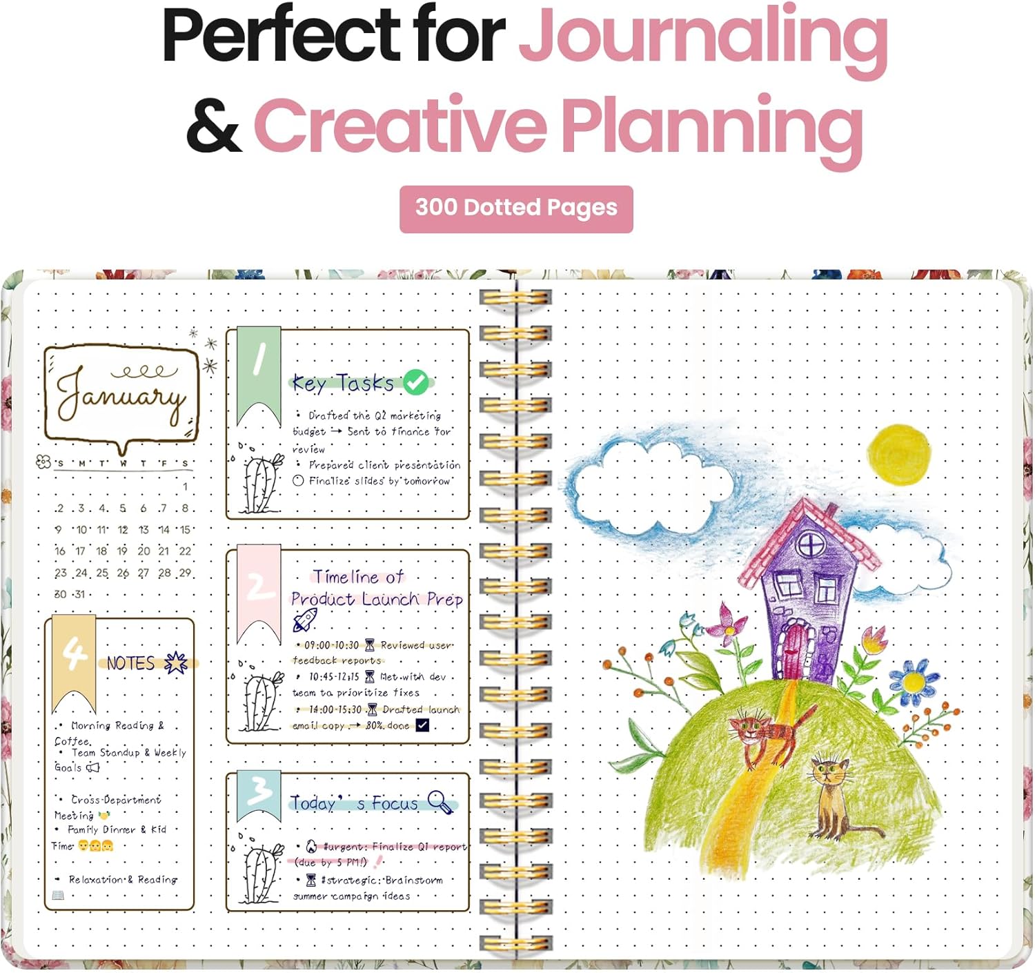 Spiral Dotted Notebook Journal for Work, 300 Pages, Thick B5 (7.1"x10") Bullet Dotted Journal for Women & Writing, Hardcover Notebook for Note Taking, Perfect for Work School Note Taking Business, Floral