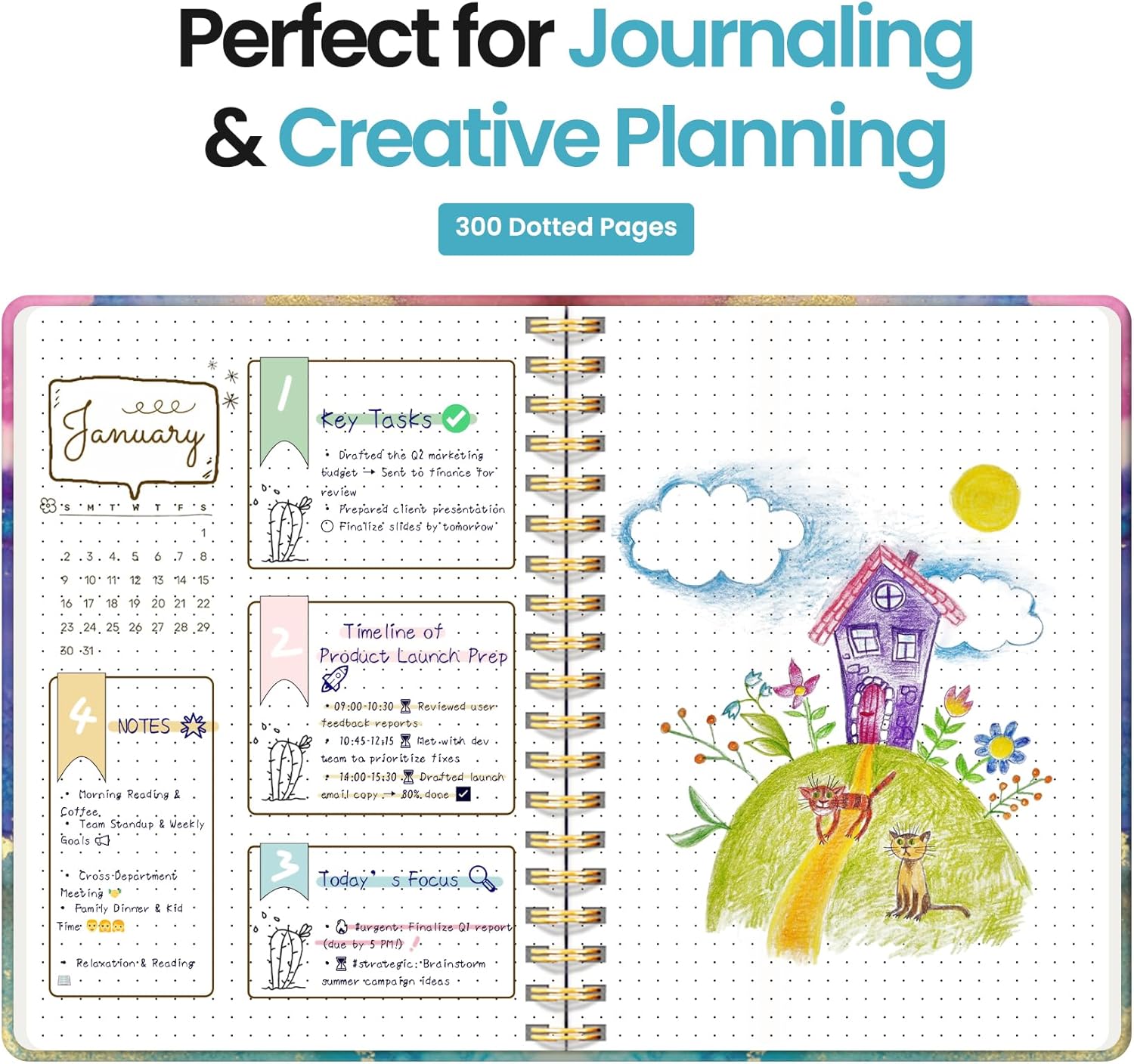- 300 Pages Dotted Journal: Unleash your creativity with 5mm dot grid pages—ideal for journaling, sketching, planning, or goal tracking. Whether you’re using it as a work notebook, journal for writing, or notebook for school, it fits easily into your daily routine.