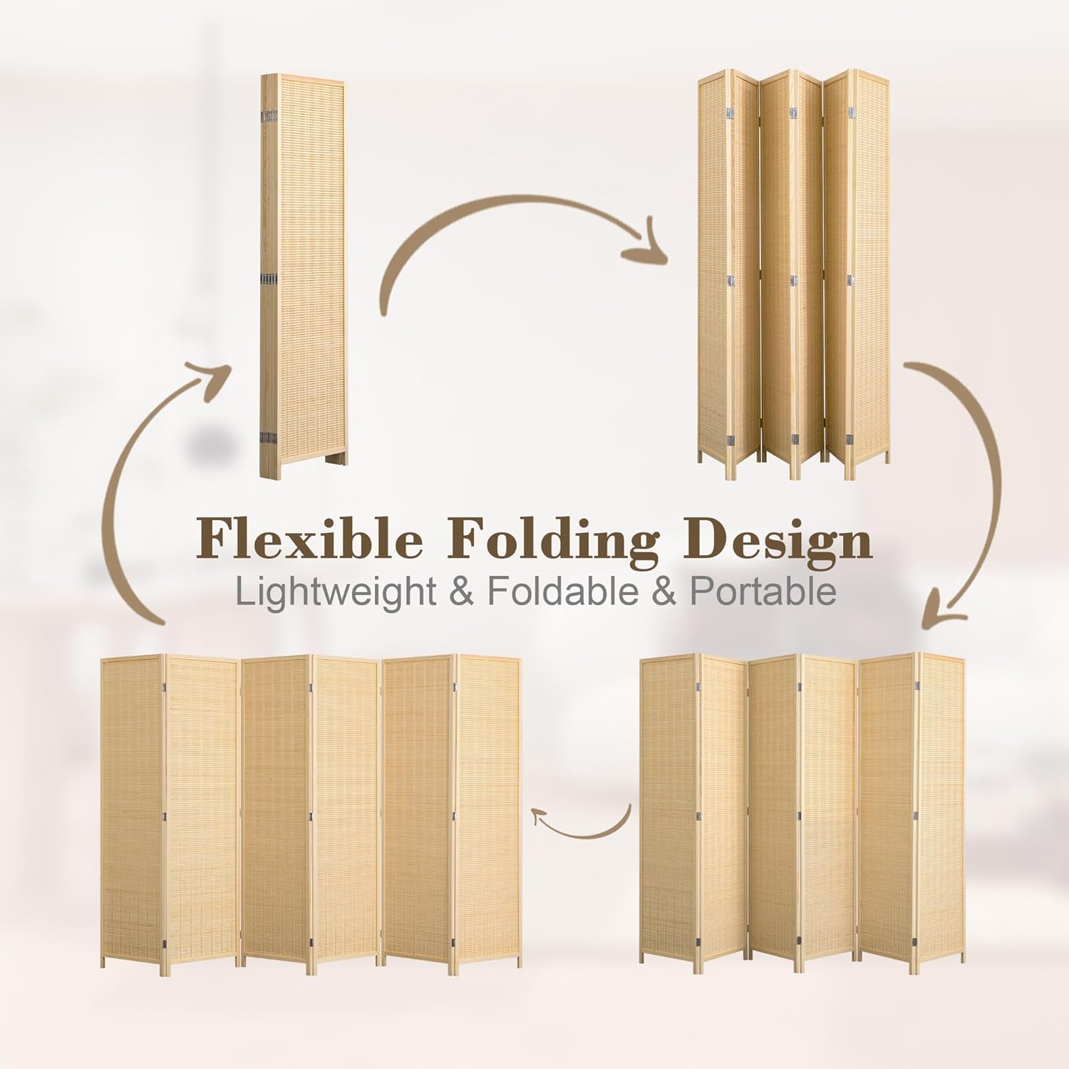 WelFurGeer 6 Panel Bamboo Room Divider, Folding Privacy Screen for Room Separation, Natural Wood Room Partitions and Dividers, Patio Privacy Panels, Decorative Wall Divider for Home, Office, Studio
