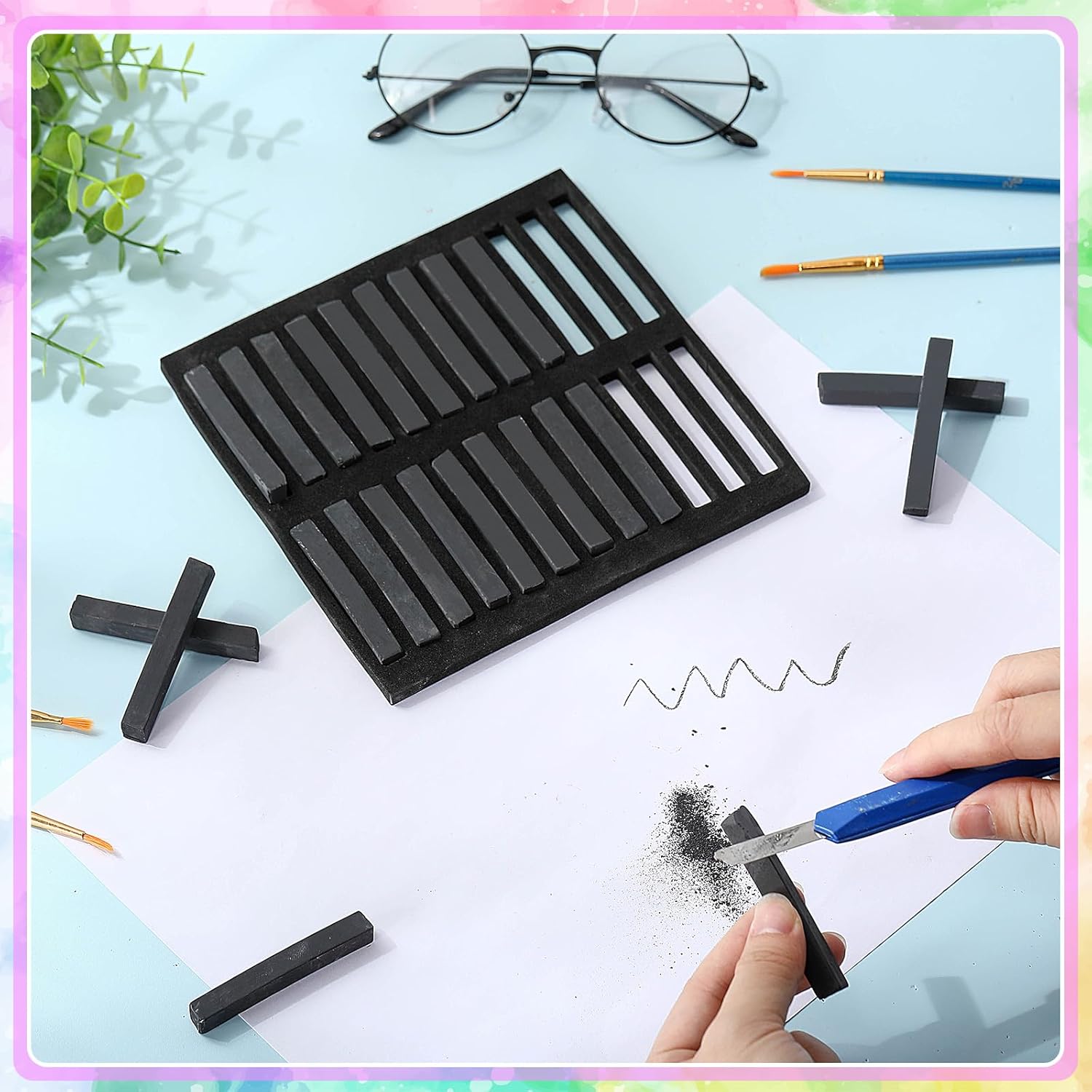 - Soft Chalk Pastels: this set includes 24 black square sketch pastel chalks, with each chalk stick measuring 8 x 8 x 60 mm; Designed with a creamy texture, these soft chalk pastels are ideal for various pastel techniques, including blending, gradient, and layering