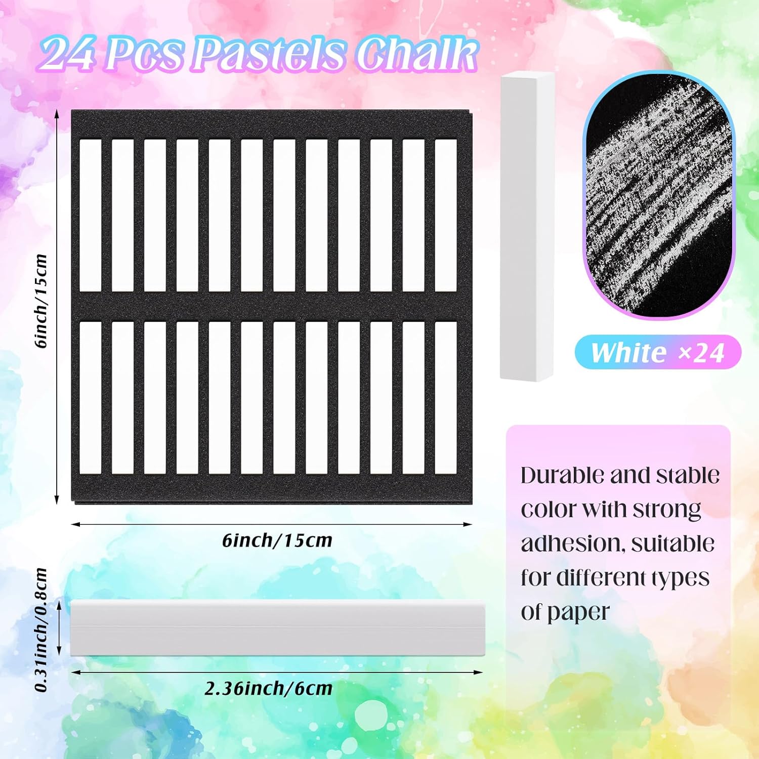 - Soft Chalk Pastels: this set includes 24 white square sketch pastel chalks, with each chalk stick measuring 8 x 8 x 60 mm; Designed with a creamy texture, these soft chalk pastels are ideal for various pastel techniques, including blending, gradient, and layering